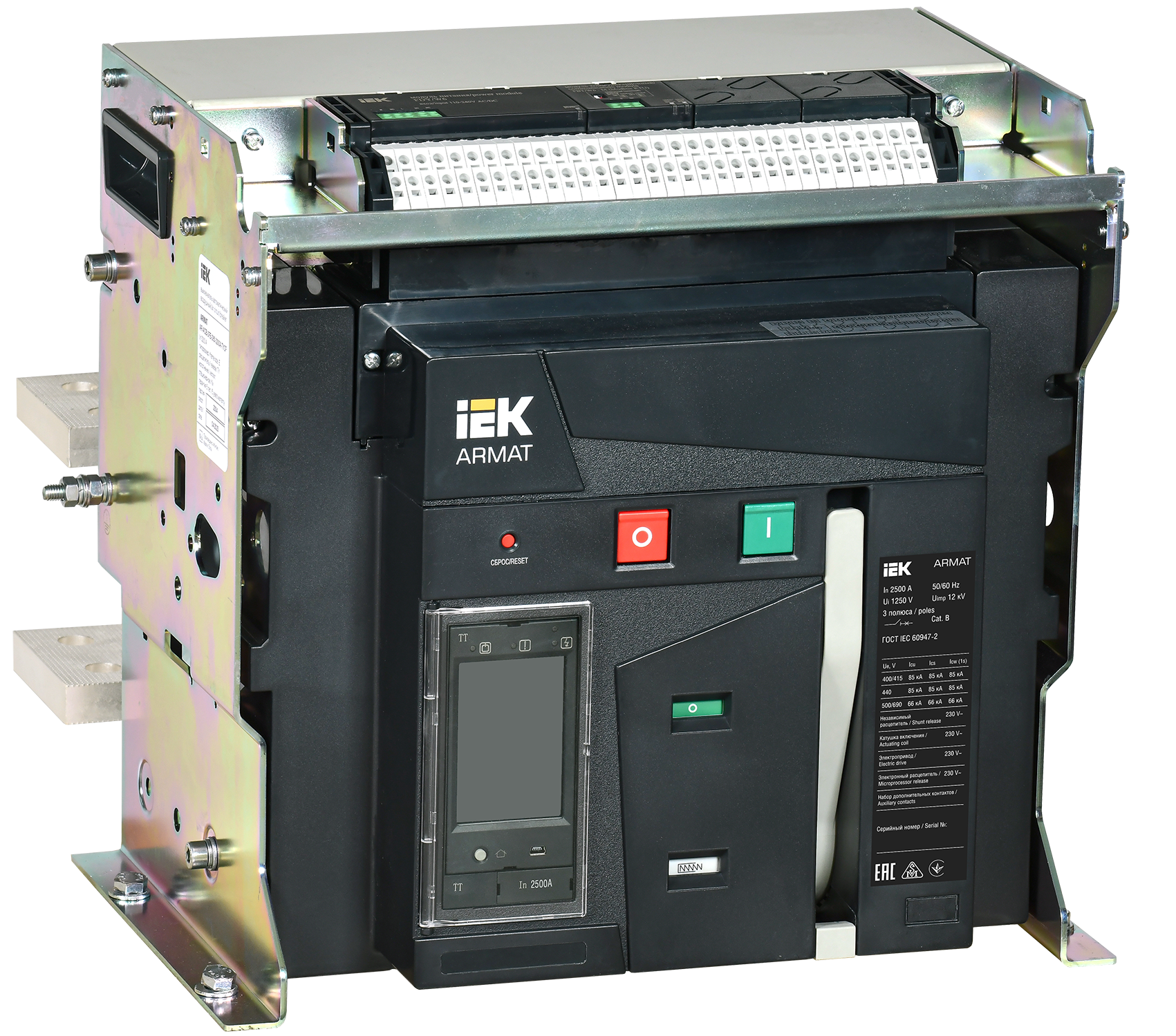 Наименование: ARMAT Воздушный автоматический выключатель стационарного исполнения 3P F 85кА 2500А расцепитель TT с комплектом аксессуаров 220В: мотор привод катушка включения катушка отключения IEK