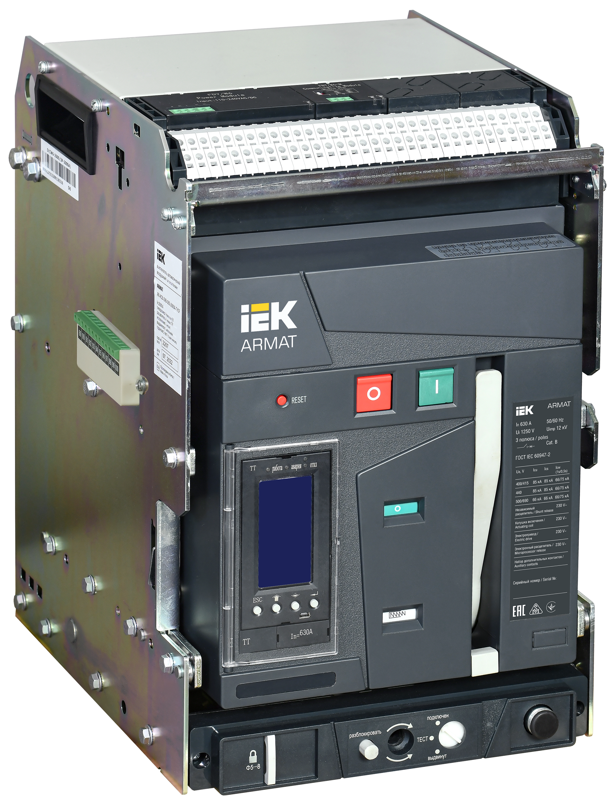 Наименование: ARMAT Воздушный автоматический выключатель выдвижного исполнения 3P типоразмер B 85кА 630А расцепитель TT с комплектом аксессуаров 220В: мотор привод катушка включения катушка отключения IEK