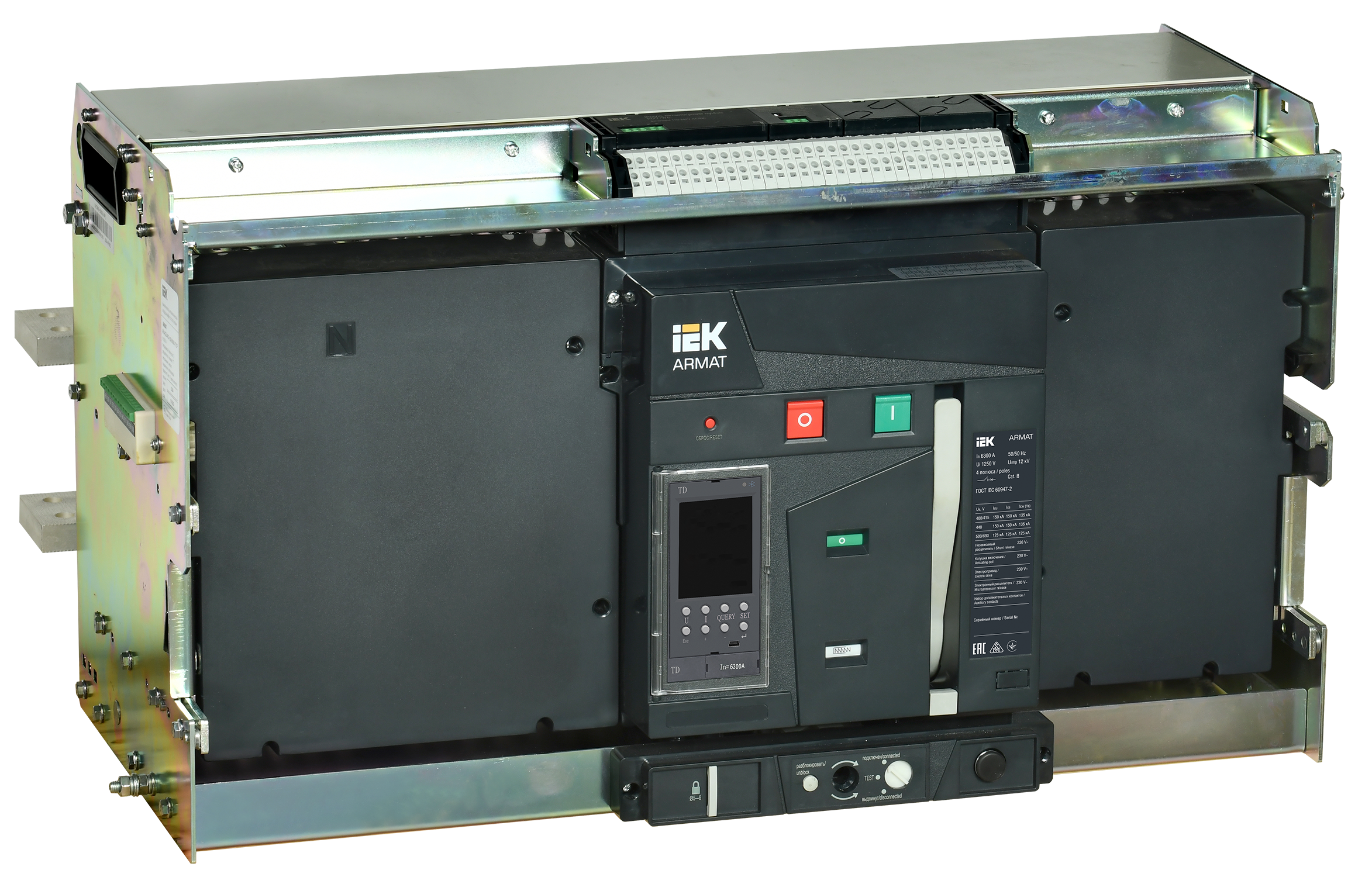 Наименование: ARMAT Воздушный автоматический выключатель выдвижного исполнения 4P типоразмер H 150кА 6300А расцепитель TD с комплектом аксессуаров 220В: мотор привод катушка включения катушка отключения IEK