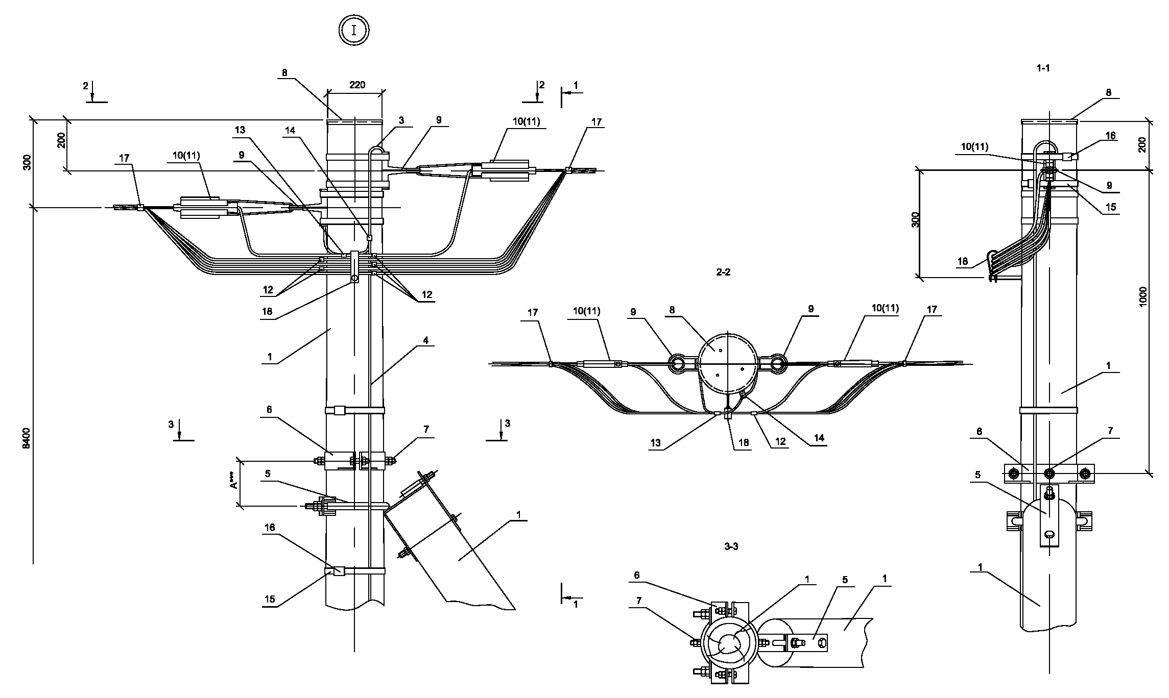 Описание: В составе проекта разработаны деревянные опоры ВЛИ 0,4кВ в соответствии с требованиями ПУЭ 7 издания. Опоры ВЛИ 0,4кВ разработаны на базе деревянных стоек длиной 9,5м, 11м, 12м. Одно и двухцепные опоры могут применяться в I-IV районах по ветру и гололёду. На всех типах опор предусмотрена возможность ответвления к вводам в здания в одну и в две стороны от ВЛ двух, четырех и 2х2 жил СИП. Опора ПАд151 устанавливается в случаях, когда требуется выполнять повторные заземления и заземления для защиты от атмосферных перенапряжений.