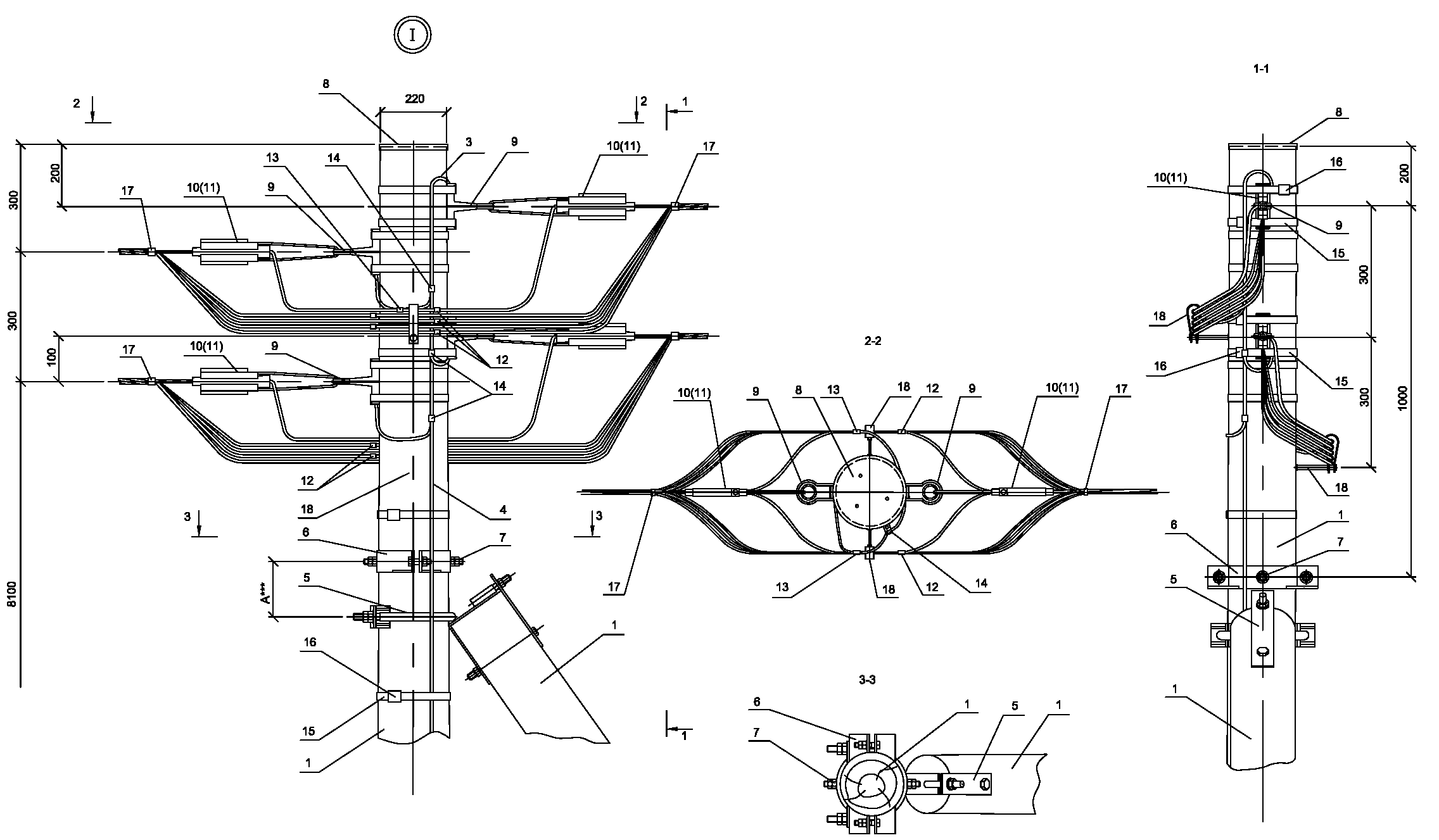 Описание: В составе проекта разработаны деревянные опоры ВЛИ 0,4кВ в соответствии с требованиями ПУЭ 7 издания. Опоры ВЛИ 0,4кВ разработаны на базе деревянных стоек длиной 9,5м, 11м, 12м. Одно и двухцепные опоры могут применяться в I-IV районах по ветру и гололёду. На всех типах опор предусмотрена возможность ответвления к вводам в здания в одну и в две стороны от ВЛ двух, четырех и 2х2 жил СИП. Опора ПАд161 устанавливается в случаях, когда требуется выполнять повторные заземления и заземления для защиты от атмосферных перенапряжений.