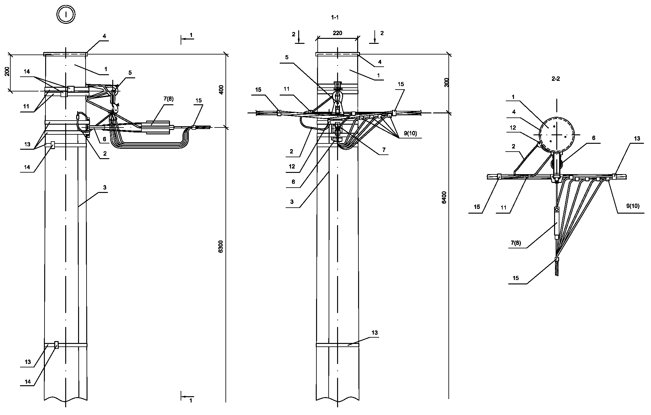 Описание: В составе проекта разработаны деревянные опоры ВЛИ 0,4кВ в соответствии с требованиями ПУЭ 7 издания. Опоры ВЛИ 0,4кВ разработаны на базе деревянных стоек длиной 9,5м, 11м, 12м. Одно и двухцепные опоры могут применяться в I-IV районах по ветру и гололёду. На всех типах опор предусмотрена возможность ответвления к вводам в здания в одну и в две стороны от ВЛ двух, четырех и 2х2 жил СИП. Опора ПОд151 устанавливается в случаях, когда требуется выполнять повторные заземления и заземления для защиты от атмосферных перенапряжений.