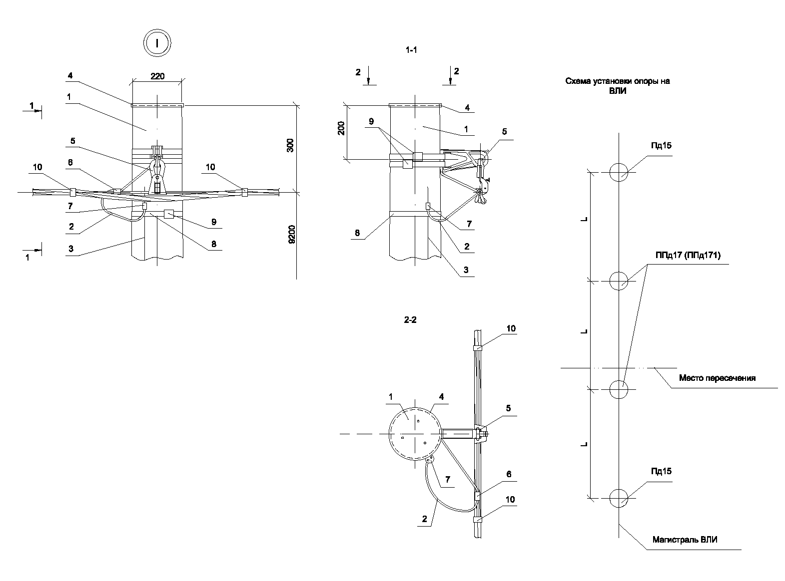 Описание: В составе проекта разработаны деревянные опоры ВЛИ 0,4кВ в соответствии с требованиями ПУЭ 7 издания. Опоры ВЛИ 0,4кВ разработаны на базе деревянных стоек длиной 9,5м, 11м, 12м. Одно и двухцепные опоры могут применяться в I-IV районах по ветру и гололёду. На всех типах опор предусмотрена возможность ответвления к вводам в здания в одну и в две стороны от ВЛ двух, четырех и 2х2 жил СИП. Опора ППд171 устанавливается в случаях, когда требуется выполнять повторные заземления и заземления для защиты от атмосферных перенапряжений.