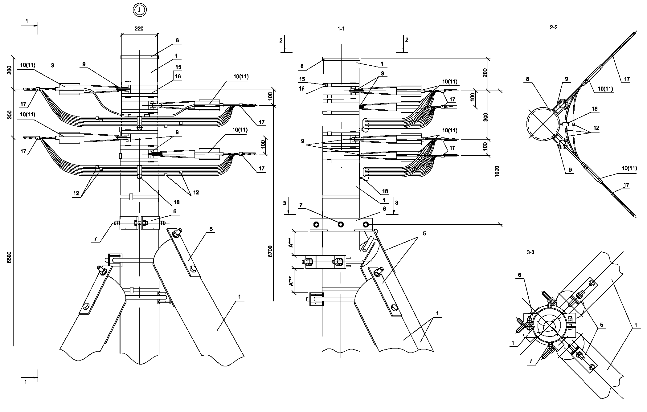 Описание: В составе проекта разработаны деревянные опоры ВЛИ 0,4кВ в соответствии с требованиями ПУЭ 7 издания. Опоры ВЛИ 0,4кВ разработаны на базе деревянных стоек длиной 9,5м, 11м, 12м. Одно и двухцепные опоры могут применяться в I-IV районах по ветру и гололёду. На всех типах опор предусмотрена возможность ответвления к вводам в здания в одну и в две стороны от ВЛ двух, четырех и 2х2 жил СИП.