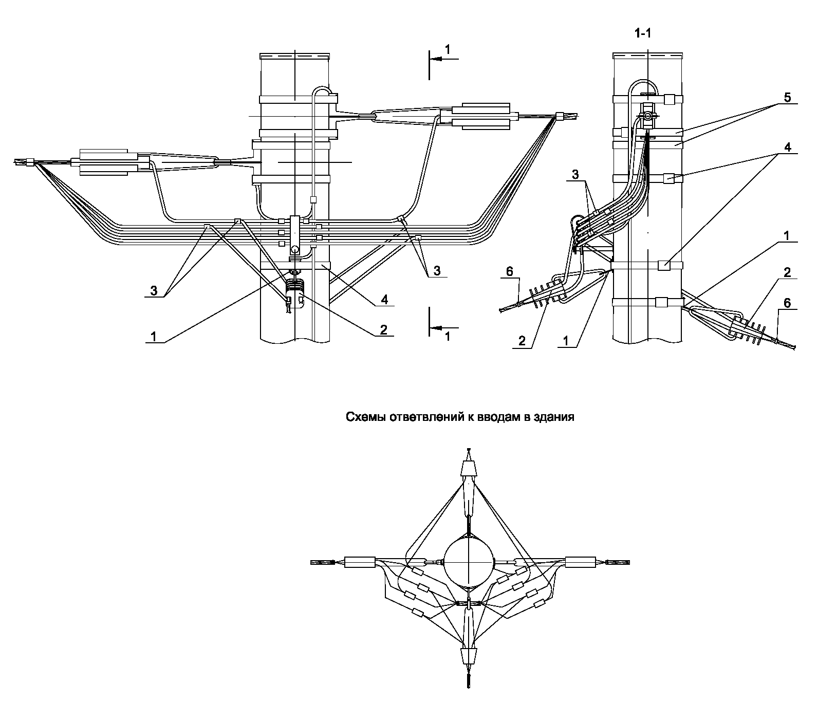 Описание: Ответвления к вводам в здания от одноцепной анкерной опоры.
