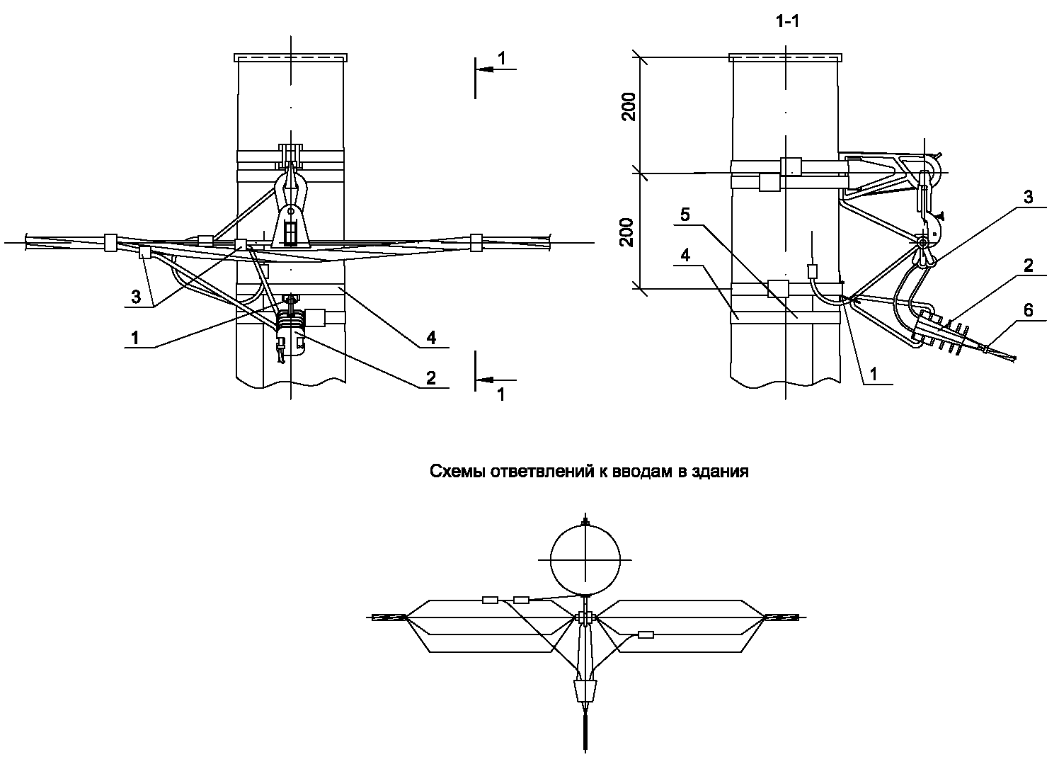 Описание: Ответвления к вводам в здания от одноцепной промежуточной опоры.
