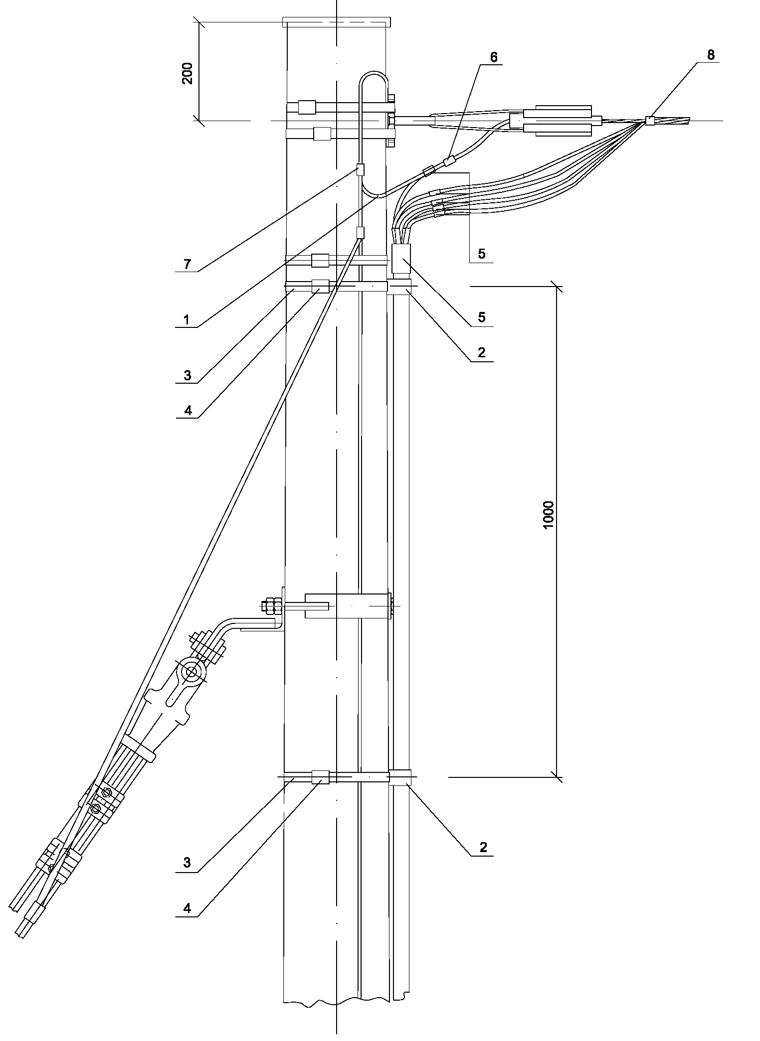 Описание: Установка кабельной муфты на концевой деревянной опоре.
