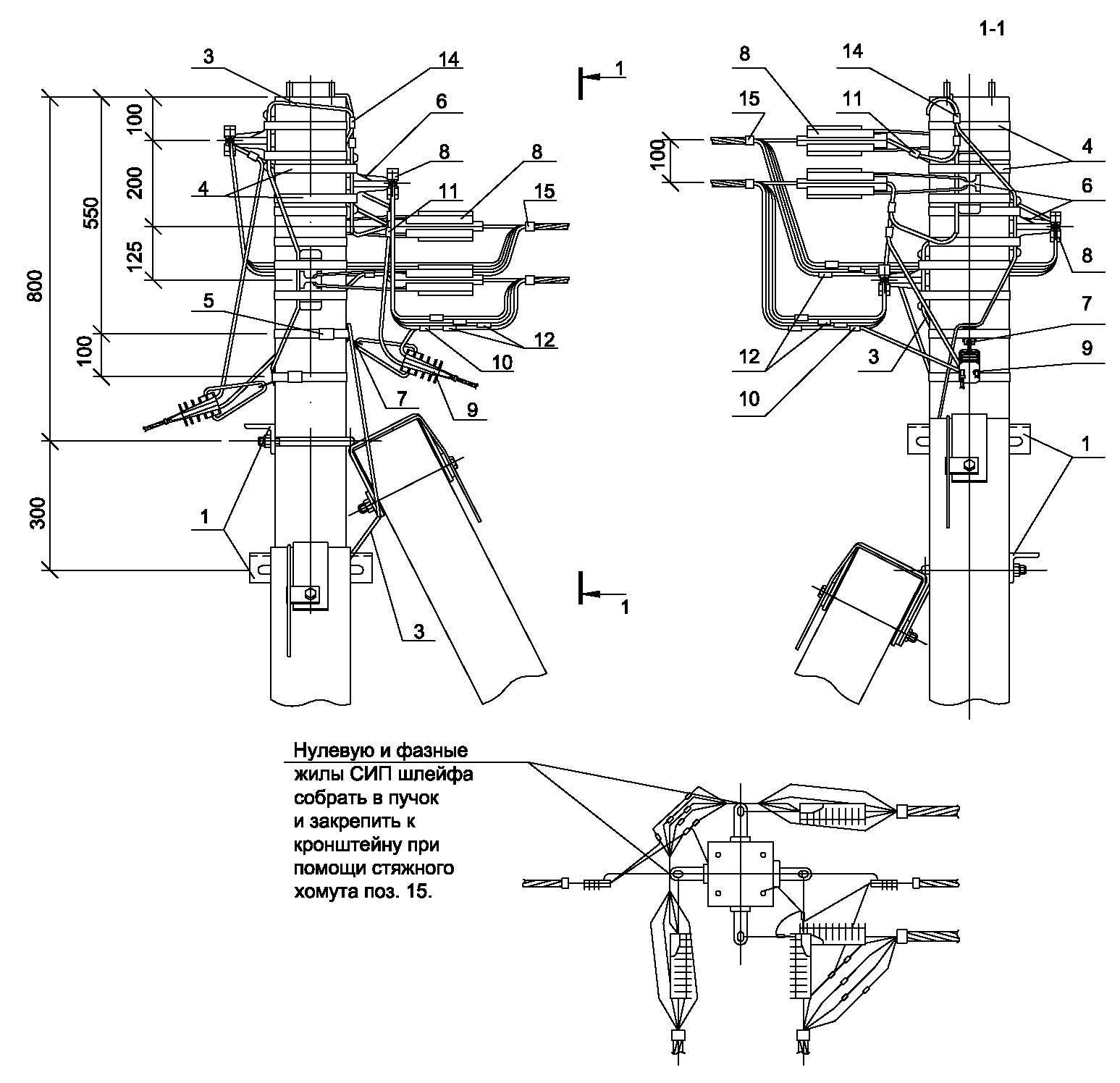 Описание: В составе проекта разработаны железобетонные опоры ВЛИ 0,4кВ в соответствии с требованиями ПУЭ 7 издания. Одно и двухцепные опоры могут применяться в I-IV районах по ветру и гололёду. Опоры предназначены для применения в застроенной и незастроенной местностях. На всех типах опор предусмотрена возможность ответвления к вводам в здания в одну и в две стороны от ВЛ двух, четырех и 2х2 жил СИП. Максимально допустимый угол поворота трассы ВЛ до 90 градусов.