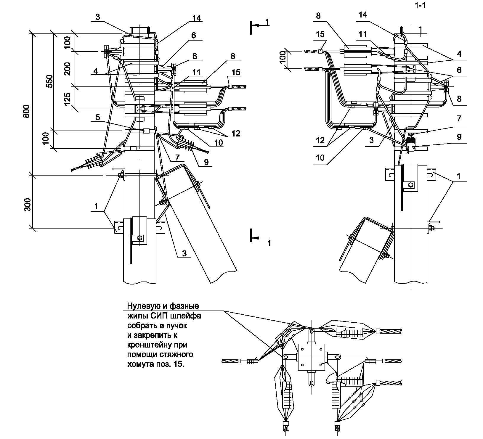 Описание: В составе проекта разработаны железобетонные опоры ВЛИ 0,4кВ в соответствии с требованиями ПУЭ 7 издания. Одно и двухцепные опоры могут применяться в I-IV районах по ветру и гололёду. Опоры предназначены для применения в застроенной и незастроенной местностях. На всех типах опор предусмотрена возможность ответвления к вводам в здания в одну и в две стороны от ВЛ двух, четырех и 2х2 жил СИП. Максимально допустимый угол поворота трассы ВЛ до 90 градусов.