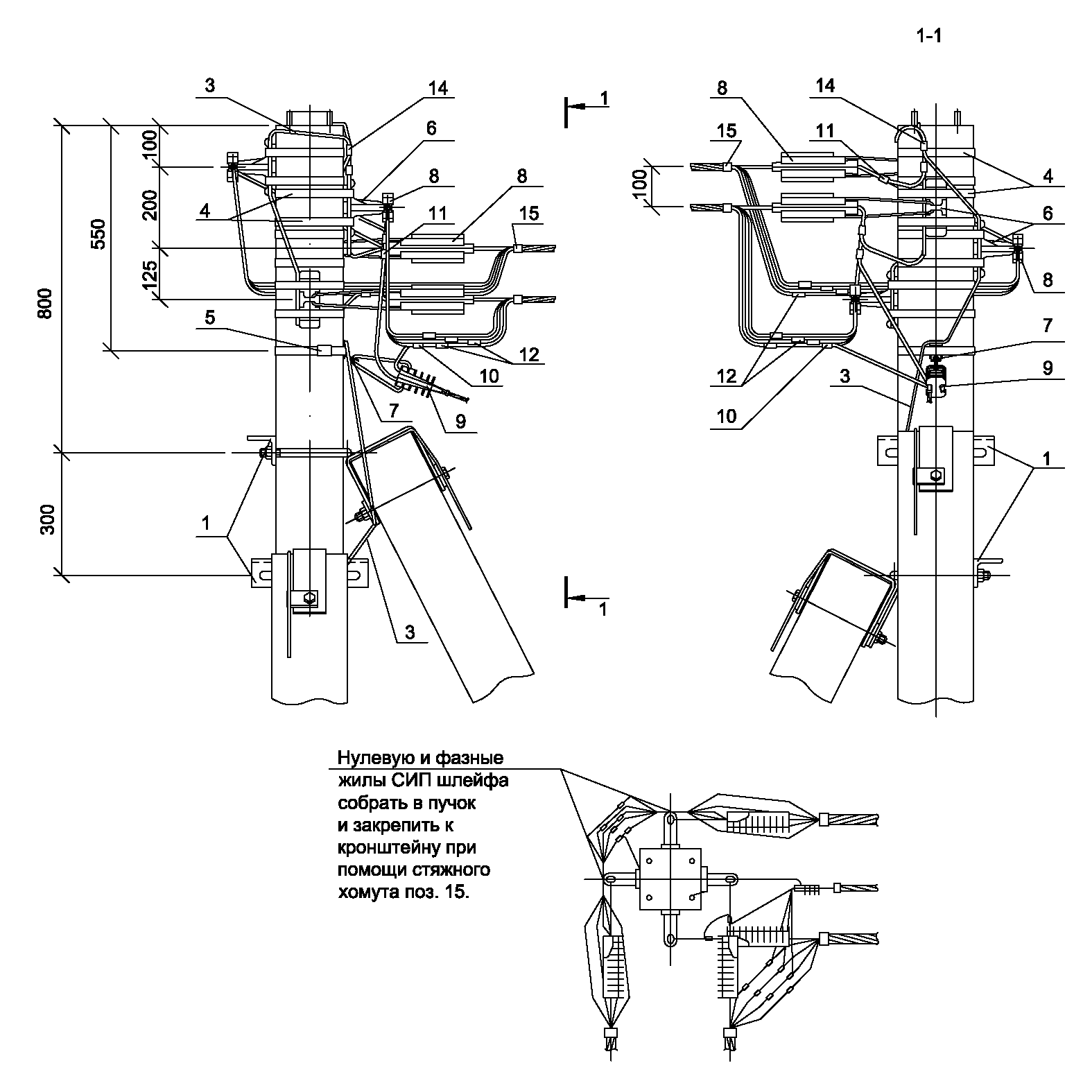 Описание: В составе проекта разработаны железобетонные опоры ВЛИ 0,4кВ в соответствии с требованиями ПУЭ 7 издания. Одно и двухцепные опоры могут применяться в I-IV районах по ветру и гололёду. Опоры предназначены для применения в застроенной и незастроенной местностях. На всех типах опор предусмотрена возможность ответвления к вводам в здания в одну и в две стороны от ВЛ двух, четырех и 2х2 жил СИП. Максимально допустимый угол поворота трассы ВЛ до 90 градусов.