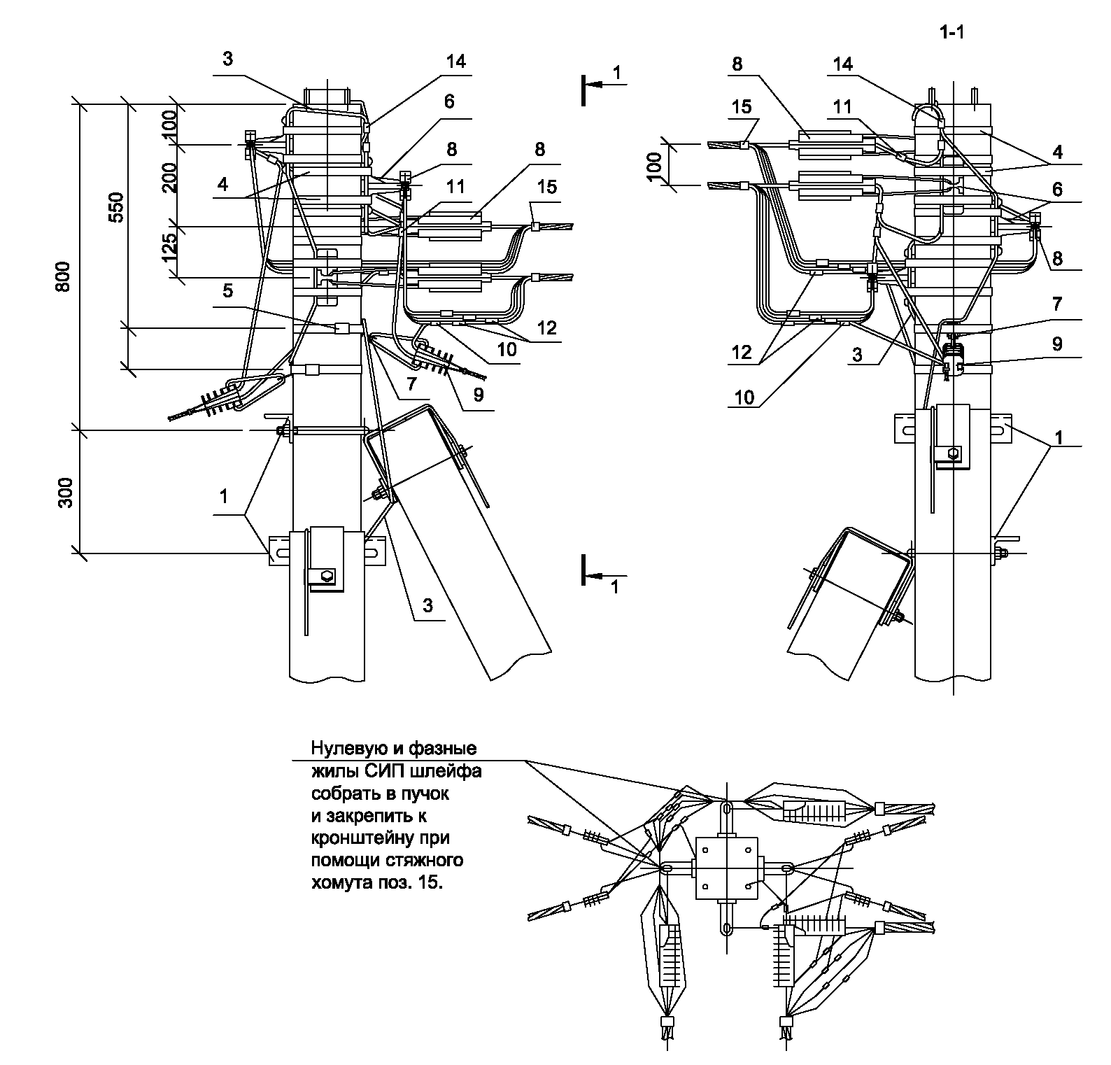 Описание: В составе проекта разработаны железобетонные опоры ВЛИ 0,4кВ в соответствии с требованиями ПУЭ 7 издания. Одно и двухцепные опоры могут применяться в I-IV районах по ветру и гололёду. Опоры предназначены для применения в застроенной и незастроенной местностях. На всех типах опор предусмотрена возможность ответвления к вводам в здания в одну и в две стороны от ВЛ двух, четырех и 2х2 жил СИП. Максимально допустимый угол поворота трассы ВЛ до 90 градусов.