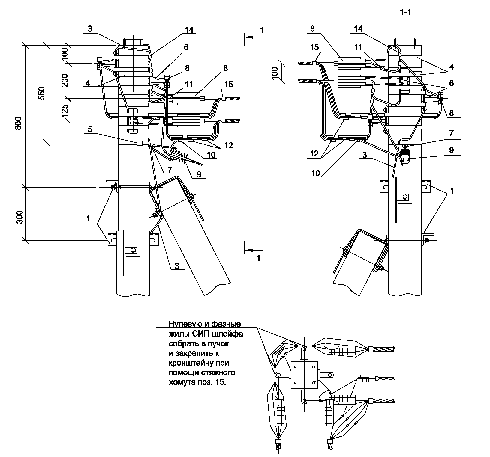 Описание: В составе проекта разработаны железобетонные опоры ВЛИ 0,4кВ в соответствии с требованиями ПУЭ 7 издания. Одно и двухцепные опоры могут применяться в I-IV районах по ветру и гололёду. Опоры предназначены для применения в застроенной и незастроенной местностях. На всех типах опор предусмотрена возможность ответвления к вводам в здания в одну и в две стороны от ВЛ двух, четырех и 2х2 жил СИП. Максимально допустимый угол поворота трассы ВЛ до 90 градусов.