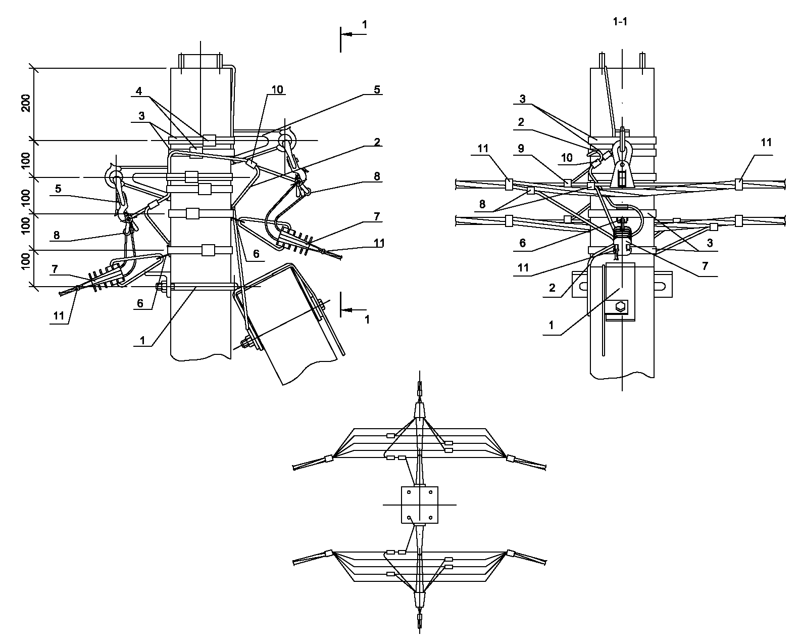 Описание: В составе проекта разработаны железобетонные опоры ВЛИ 0,4кВ в соответствии с требованиями ПУЭ 7 издания. Одно и двухцепные опоры могут применяться в I-IV районах по ветру и гололёду. Опоры предназначены для применения в застроенной и незастроенной местностях. На всех типах опор предусмотрена возможность ответвления к вводам в здания в одну и в две стороны от ВЛ двух, четырех и 2х2 жил СИП. Максимально допустимый угол поворота трассы ВЛ до 30 градусов.