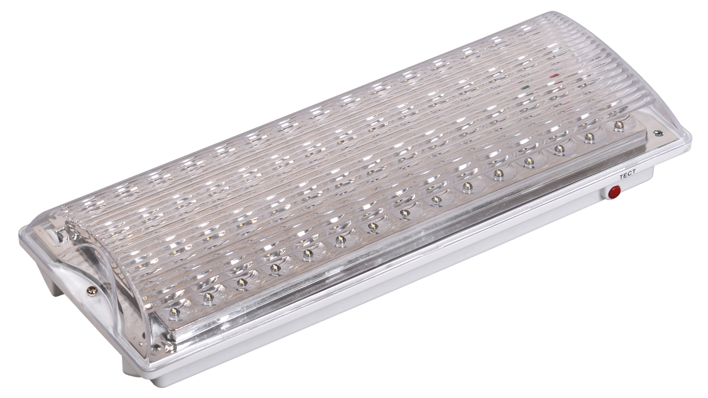 Преимущества: Встроенный никель-кадмиевый аккумулятор. Встроенная защита от глубокого разряда и перезаряда аккумулятора. Встроенная кнопка "Тест", предназначена для проверки работоспособности светильника, имитирующее падение напряжения сети рабочего освещения. Визуальный контроль состояния светильника и батареи. На переднюю панель корпуса выведены два светодиода (индикатора). Зеленый – процесс зарядки аккумулятора. Красный – светильник подключен к сети, аккумулятор заряжен полностью. Работа от аккумулятора – 4ч. Светильники загораются в течение 5 секунд, после падения напряжения рабочего питания.