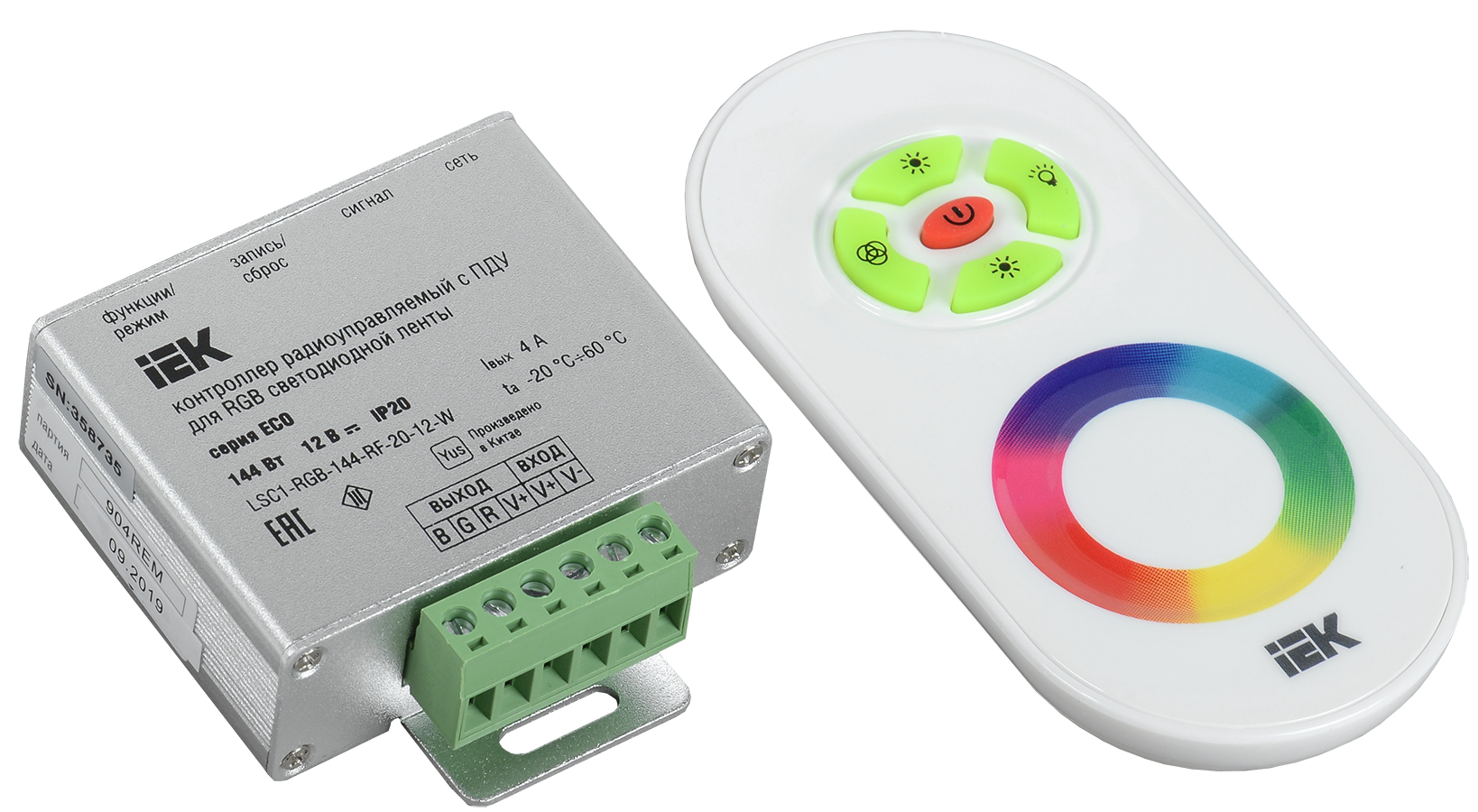 Наименование: Контроллер с ПДУ радио RGB 3 канала 12В 4А 144Вт белый IEK