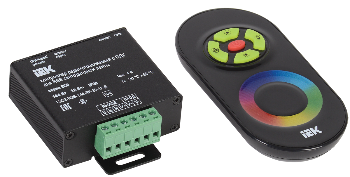 Наименование: Контроллер с ПДУ радио RGB 3 канала 12В 4А 144Вт черный IEK