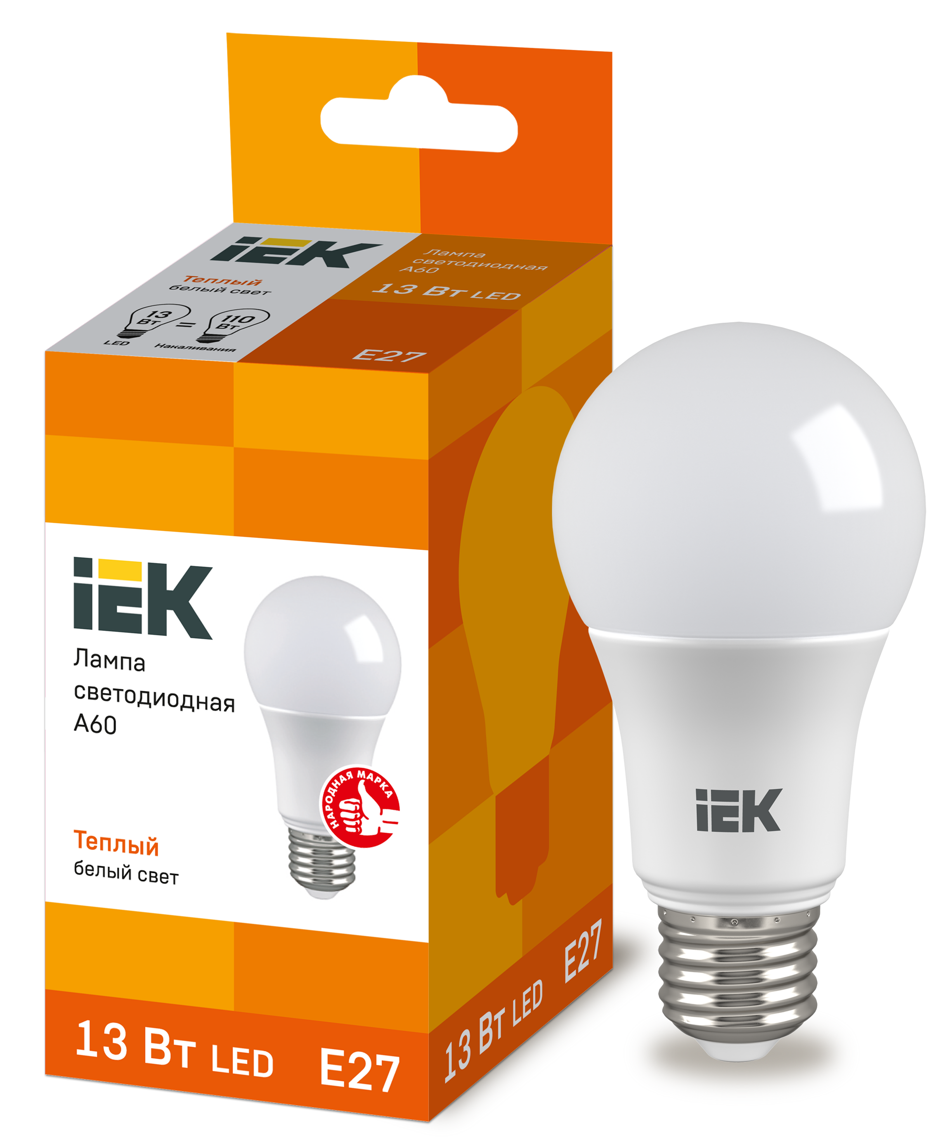 Наименование: Лампа светодиодная A60 груша 13Вт 230В 3000К E27 IEK