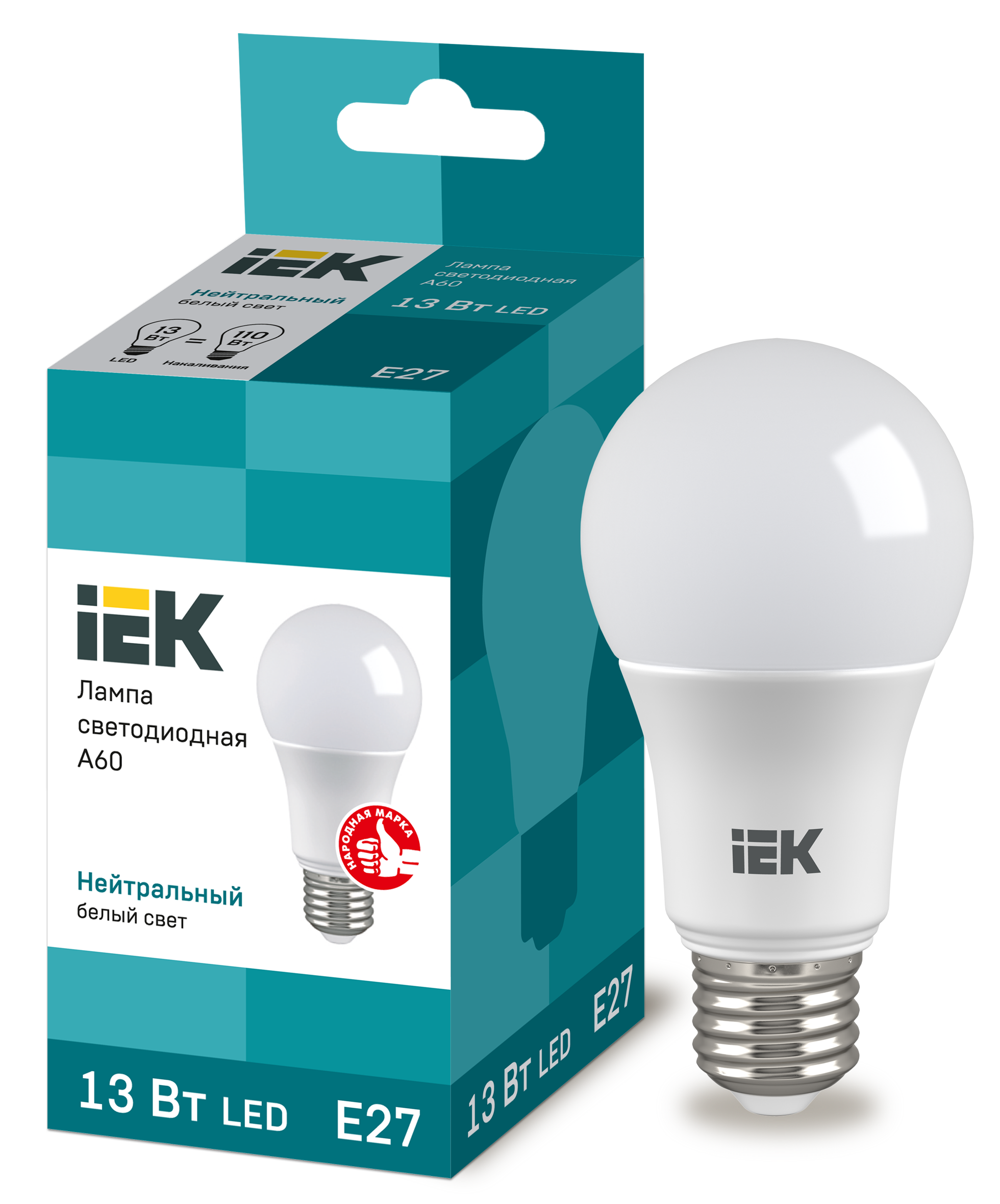 Наименование: Лампа светодиодная A60 груша 13Вт 230В 4000К E27 IEK