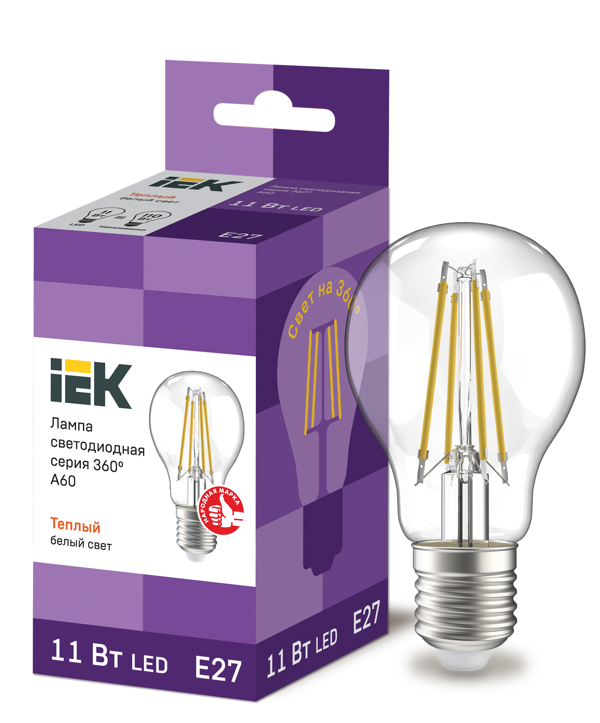 Наименование: Лампа светодиодная A60 груша прозрачная 11Вт 230В 3000К E27 серия 360° IEK