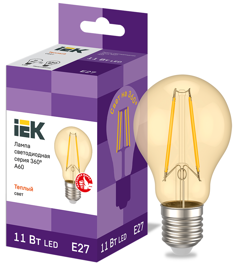 Наименование: Лампа светодиодная A60 груша золото 11Вт 230В 2700К E27 серия 360° IEK