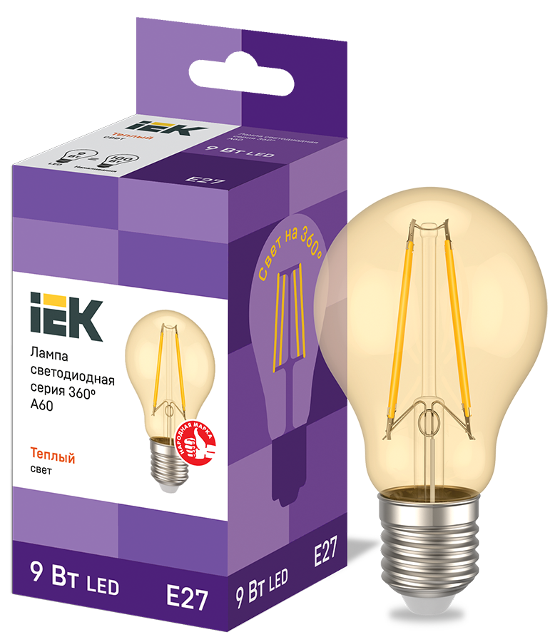 Наименование: Лампа светодиодная A60 груша золото 9Вт 230В 2700К E27 серия 360° IEK