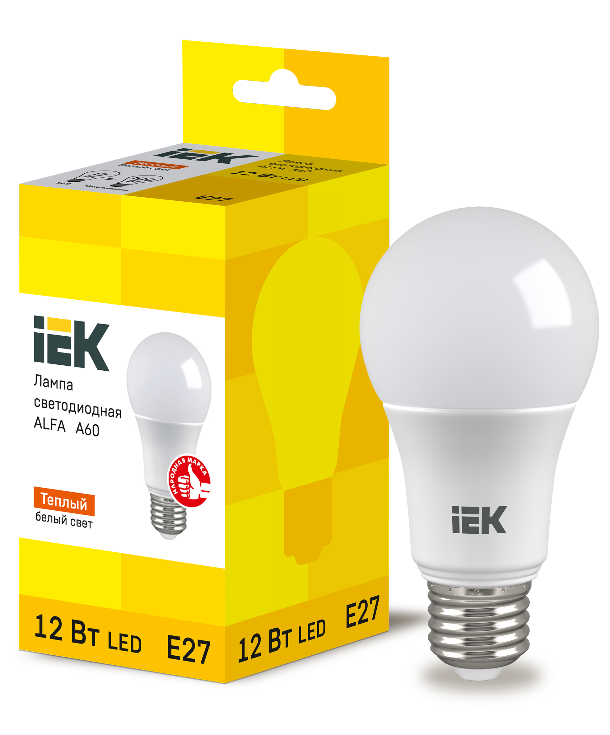 Наименование: Лампа светодиодная ALFA A60 груша 12Вт 230В 3000К E27 IEK