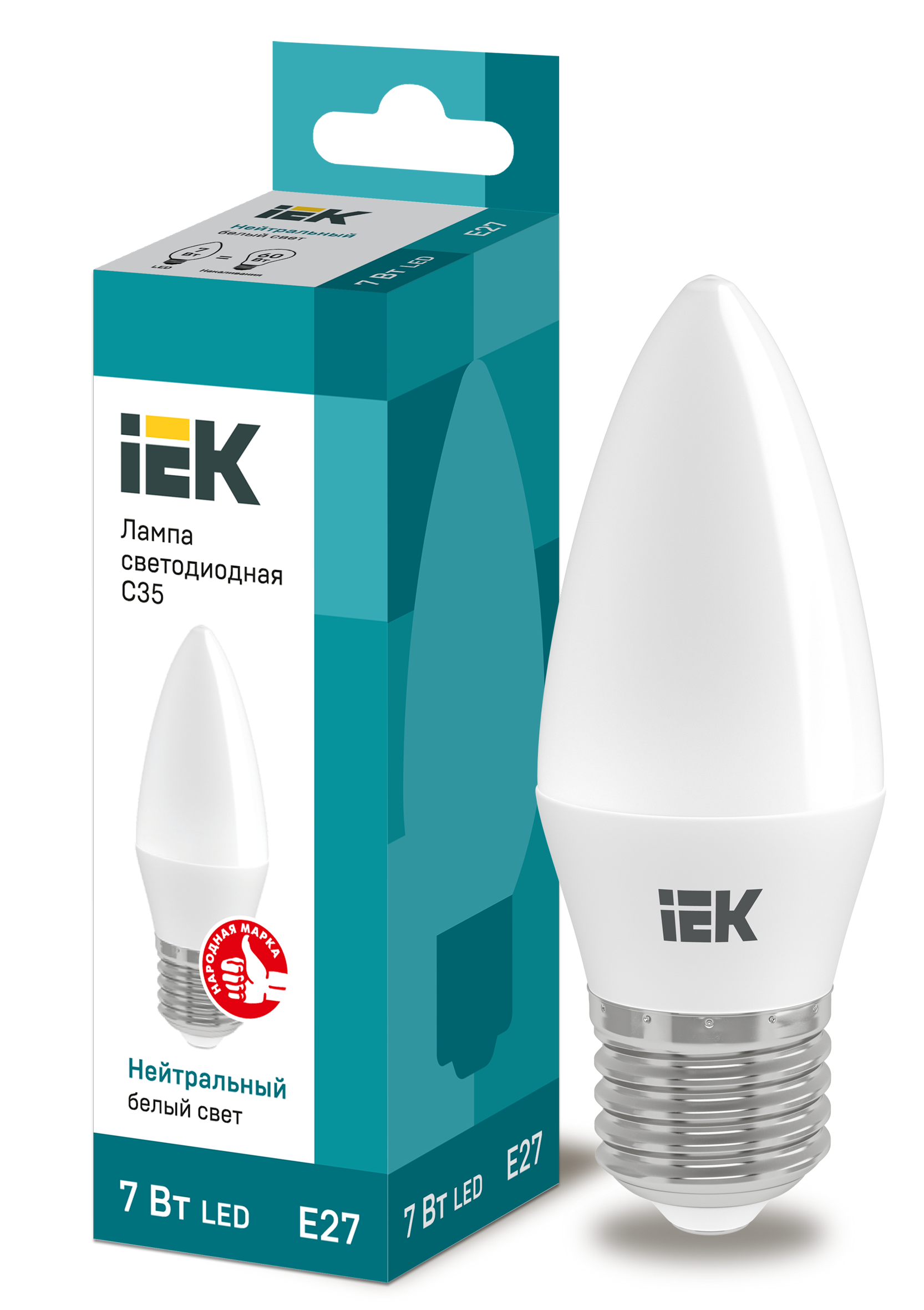 Наименование: Лампа светодиодная C35 свеча 7Вт 230В 4000К E27 IEK