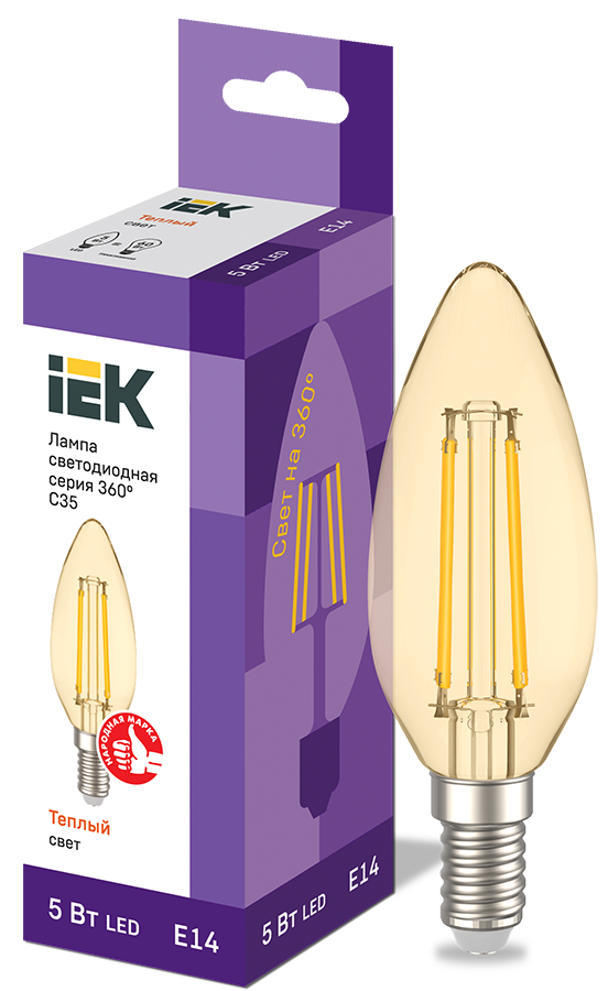 Наименование: Лампа светодиодная C35 свеча золото 5Вт 230В 2700К E14 серия 360° IEK