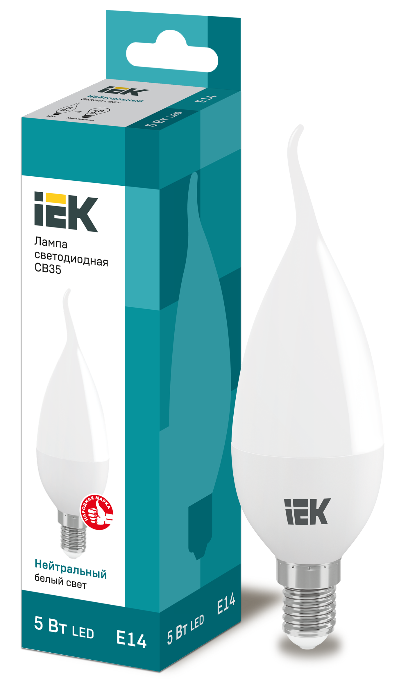 Наименование: Лампа светодиодная CB35 свеча на ветру 5Вт 230В 4000К E14 IEK
