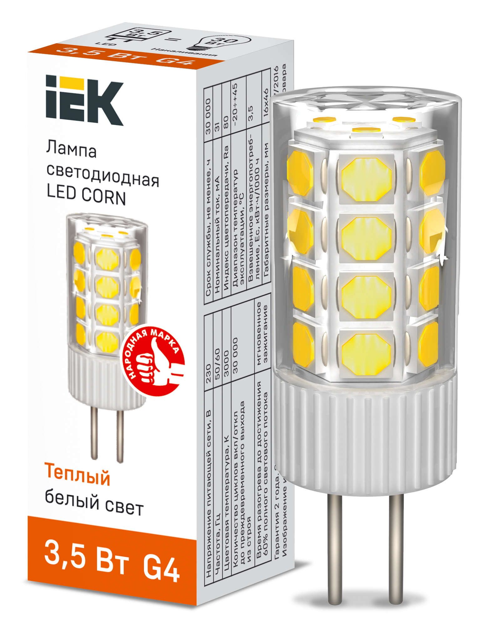 Наименование: Лампа светодиодная CORN капсула 3,5Вт 230В 3000К керамика G4 IEK