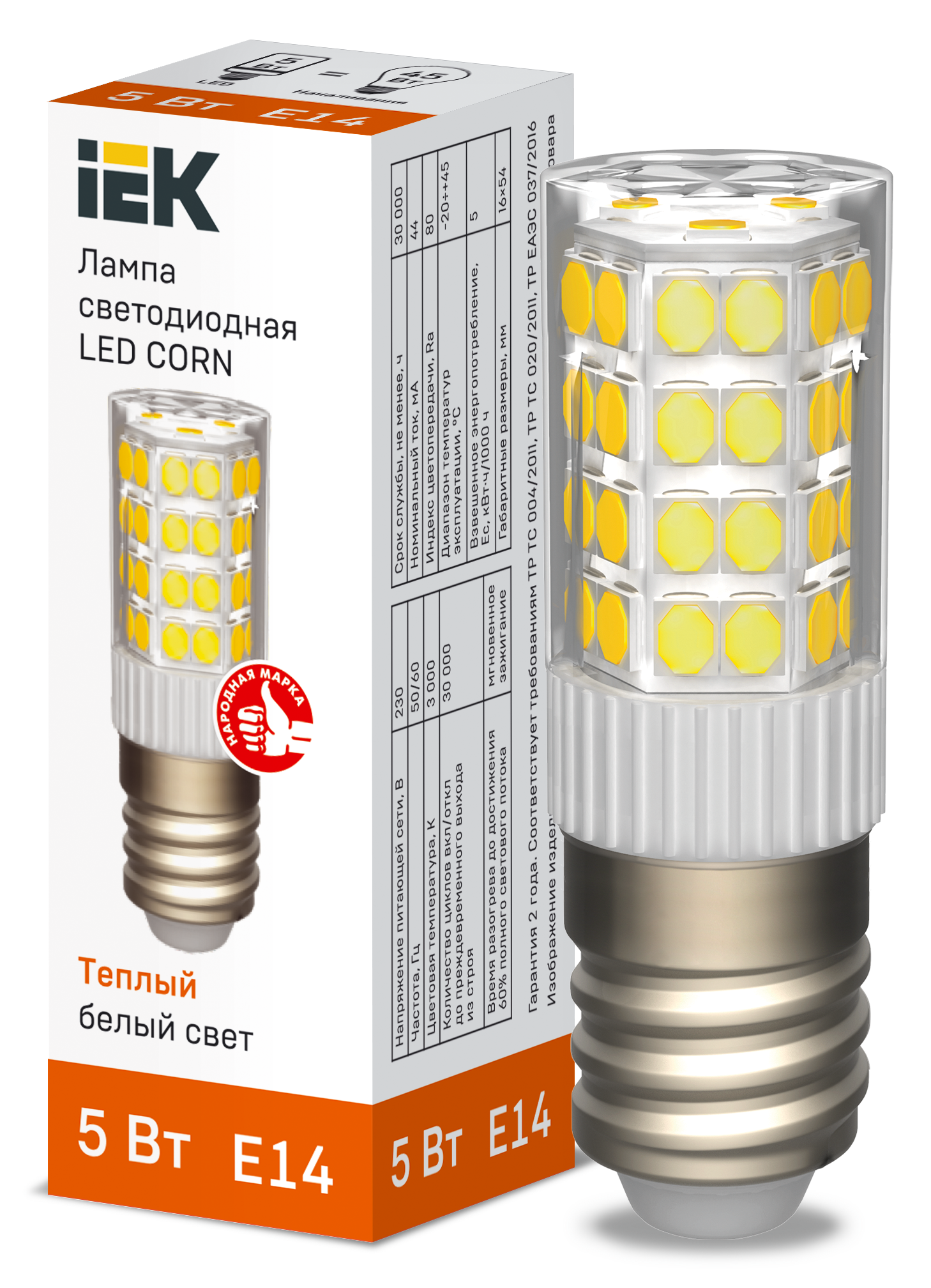 Наименование: Лампа светодиодная CORN капсула 5Вт 230В 3000К керамика E14 IEK