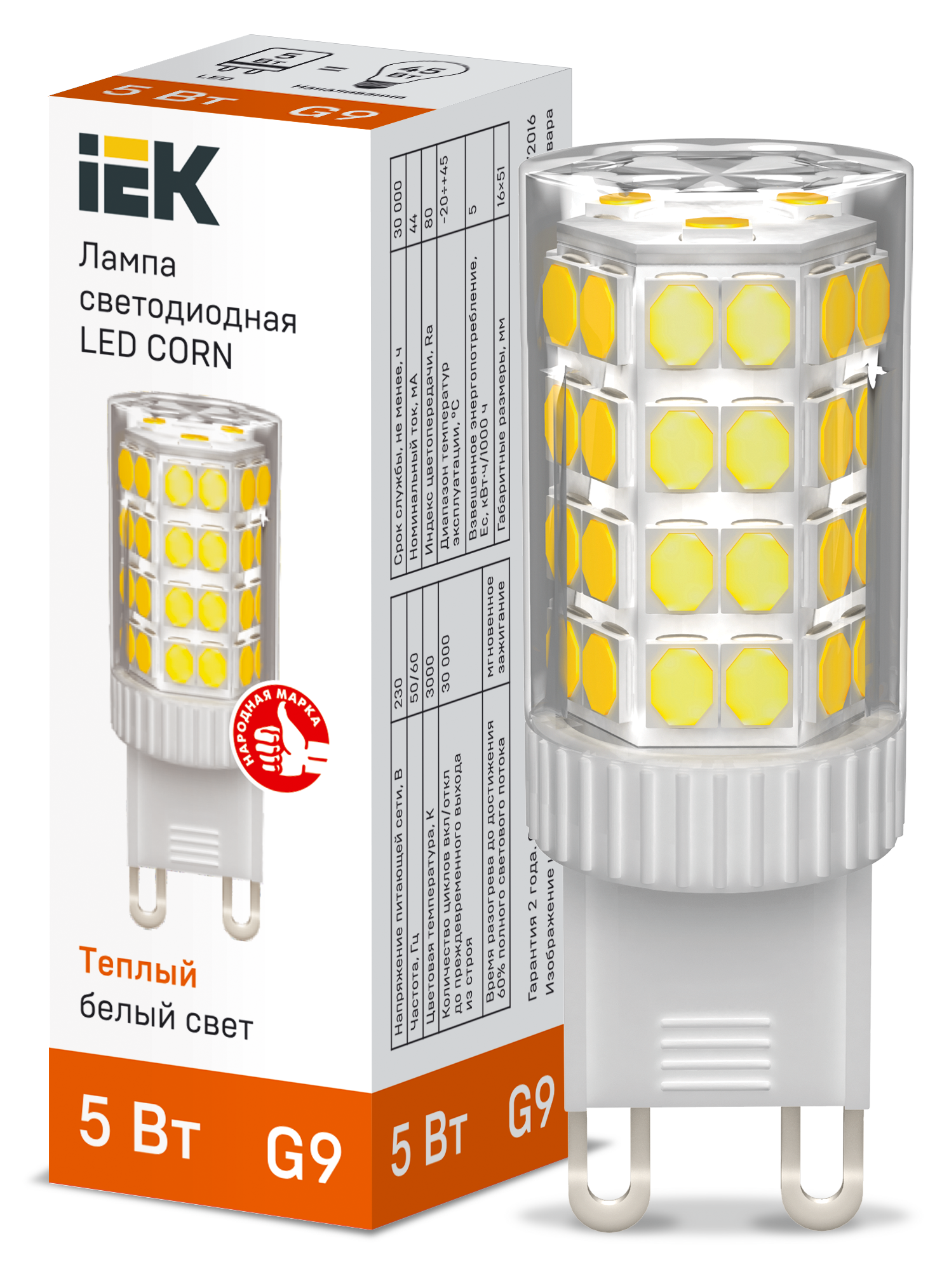 Наименование: Лампа светодиодная CORN капсула 5Вт 230В 3000К керамика G9 IEK