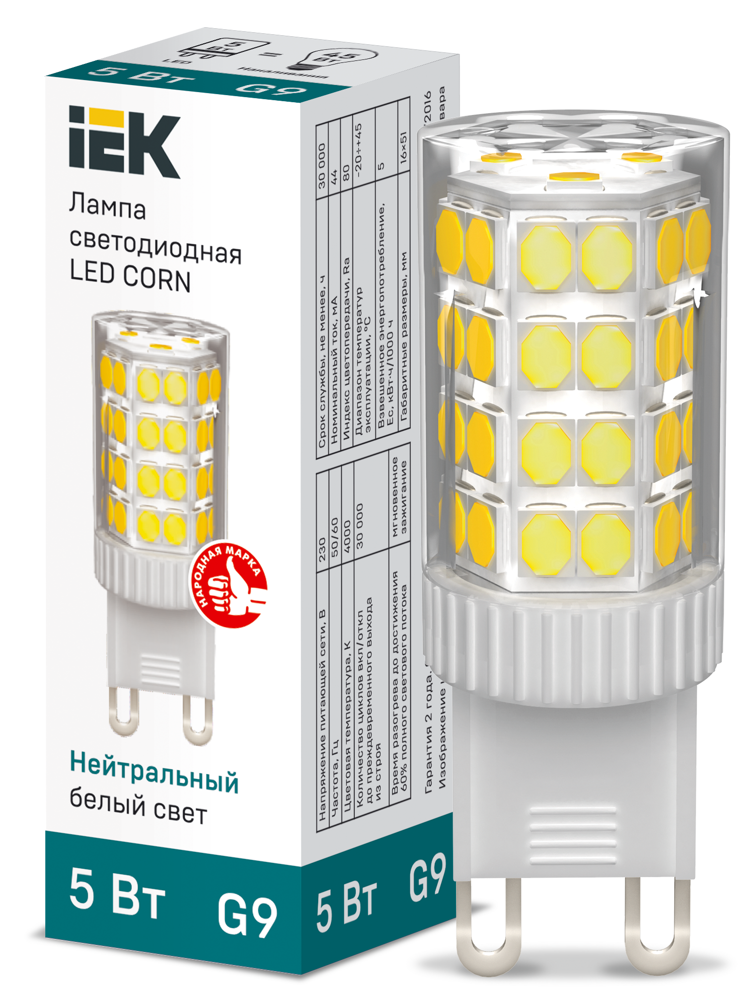 Наименование: Лампа светодиодная CORN капсула 5Вт 230В 4000К керамика G9 IEK