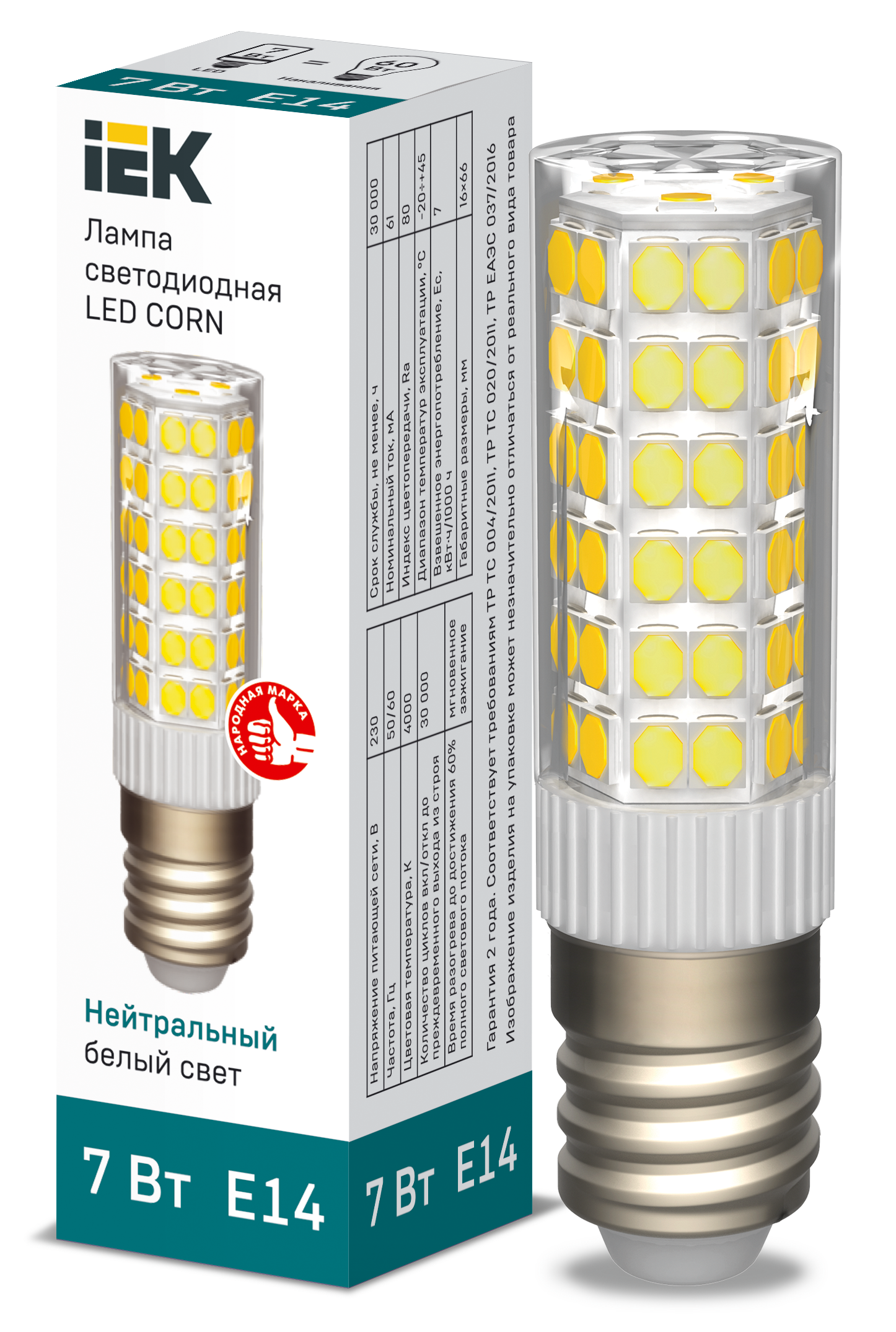 Наименование: Лампа светодиодная CORN капсула 7Вт 230В 4000К керамика E14 IEK