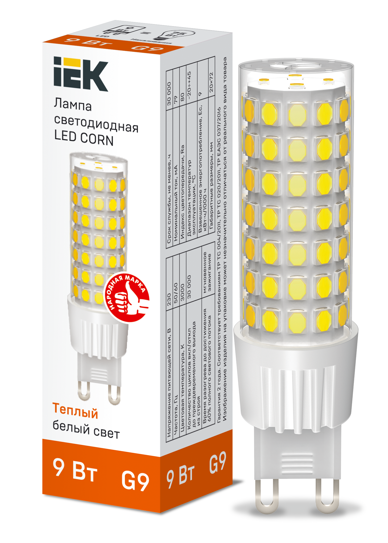 Наименование: Лампа светодиодная CORN капсула 9Вт 230В 3000К керамика G9 IEK