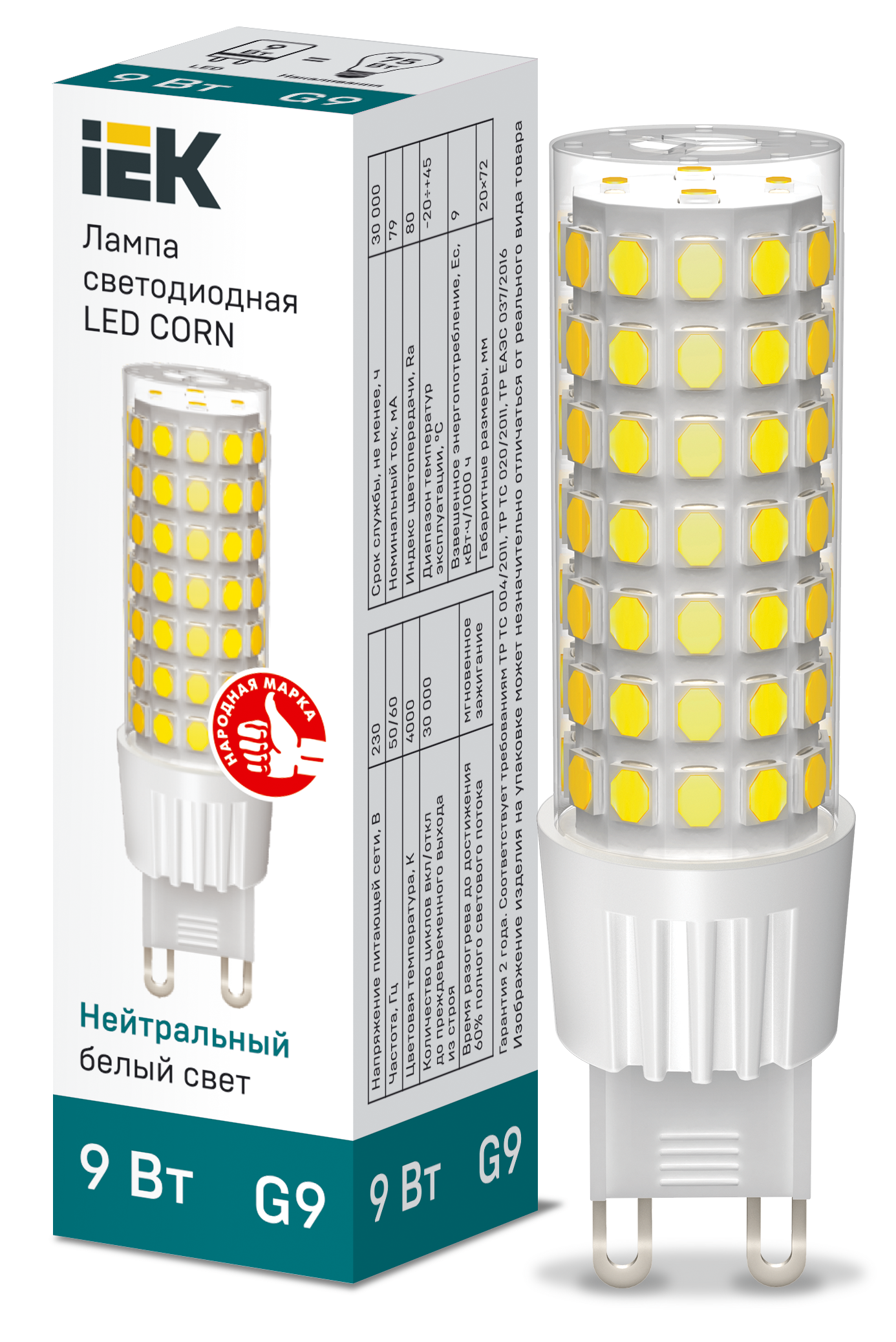 Наименование: Лампа светодиодная CORN капсула 9Вт 230В 4000К керамика G9 IEK
