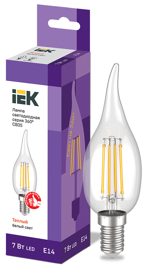 Описание: Лампа LED CВ35 св.н/ветру 7Вт 230В 3000К E14 серия 360° IEK с нитевидным светодиодом (филаментная нить) является одним из самых эффективных источников света. Главное отличие от обычных светодиодных ламп – угол рассеивания света до 360° (дополнительный комфорт для глаз). Лампа применяется в осветительных приборах бытового назначения. Представлены в 3 вариантах: с прозрачной, золоченой и матовой колбами. Соответствуют требованиям Технических регламентов Таможенного союза ТР ТС 004/2011, ТР ТС 020/2011, МЭК 62560 и постановления Правительства РФ от 10.11.2017 № 1356.
