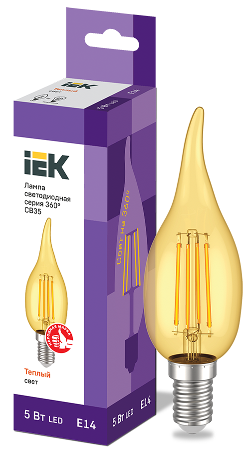 Наименование: Лампа светодиодная CВ35 свеча на ветру золото 5Вт 230В 2700К E14 серия 360° IEK