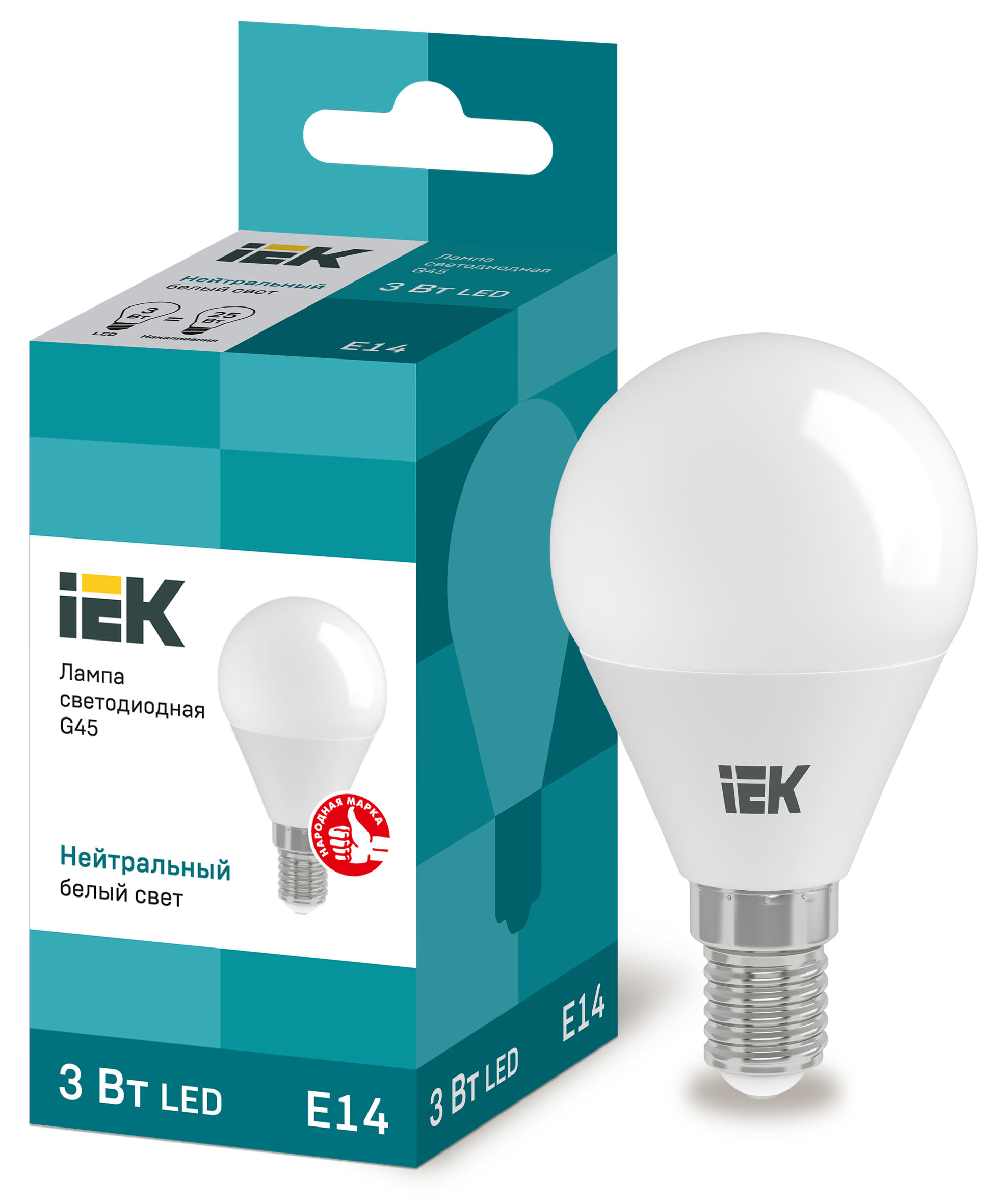 Наименование: Лампа светодиодная G45 шар 3Вт 230В 4000К E14 IEK