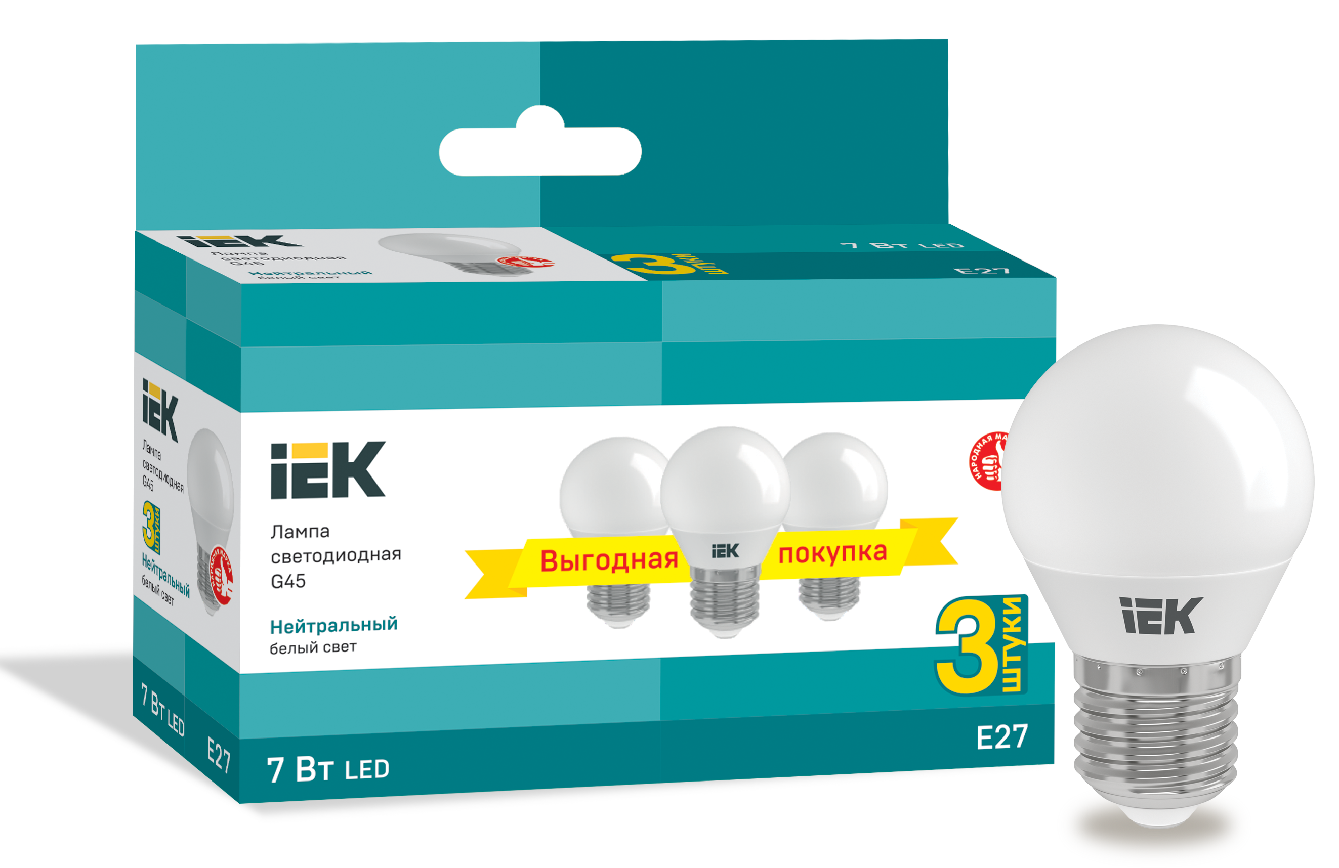 Наименование: Лампа светодиодная G45 шар 7Вт 230В 4000К E27 (3шт/упак) IEK