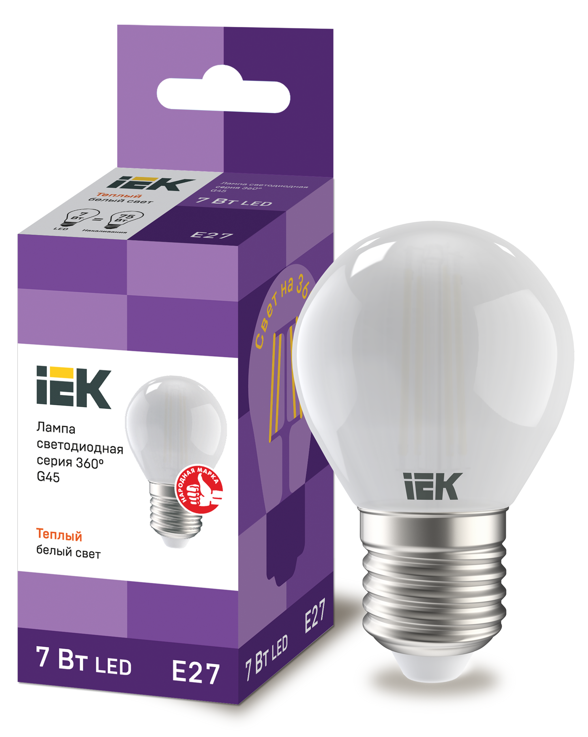 Наименование: Лампа светодиодная G45 шар матовая 7Вт 230В 3000К E27 серия 360° IEK