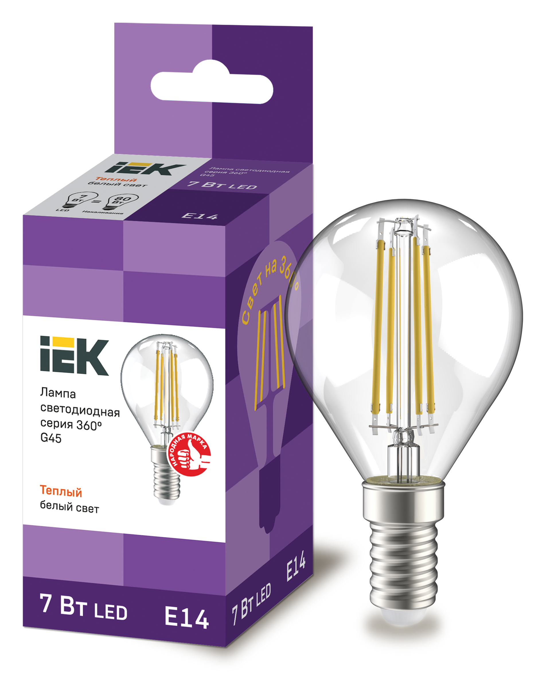 Наименование: Лампа светодиодная G45 шар прозрачная 7Вт 230В 3000К E14 серия 360° IEK