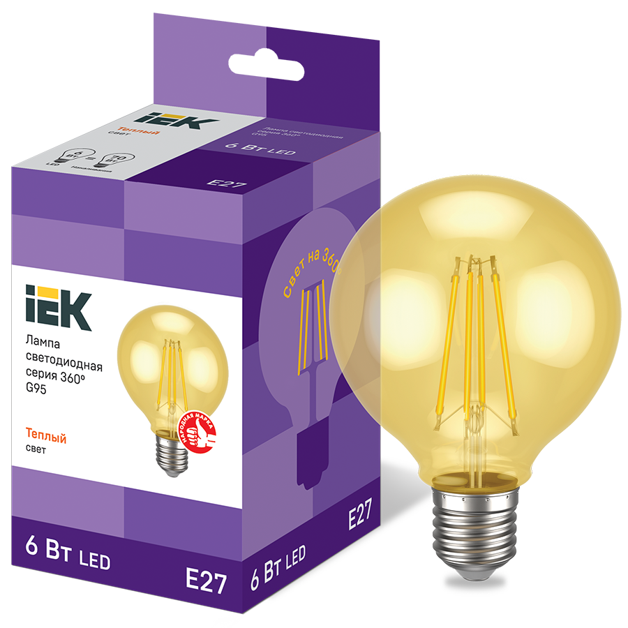 Описание: Лампа LED G95 шар золото 6Вт 230В 2700К E27 серия 360° IEK с нитевидным светодиодом (филаментная нить) является одним из самых эффективных источников света. Главное отличие от обычных светодиодных ламп – угол рассеивания света до 360° (дополнительный комфорт для глаз). Лампа применяется в осветительных приборах бытового назначения. Представлены в 3 вариантах: с прозрачной, золоченой и матовой колбами. Соответствуют требованиям Технических регламентов Таможенного союза ТР ТС 004/2011, ТР ТС 020/2011, МЭК 62560 и постановления Правительства РФ от 10.11.2017 № 1356.