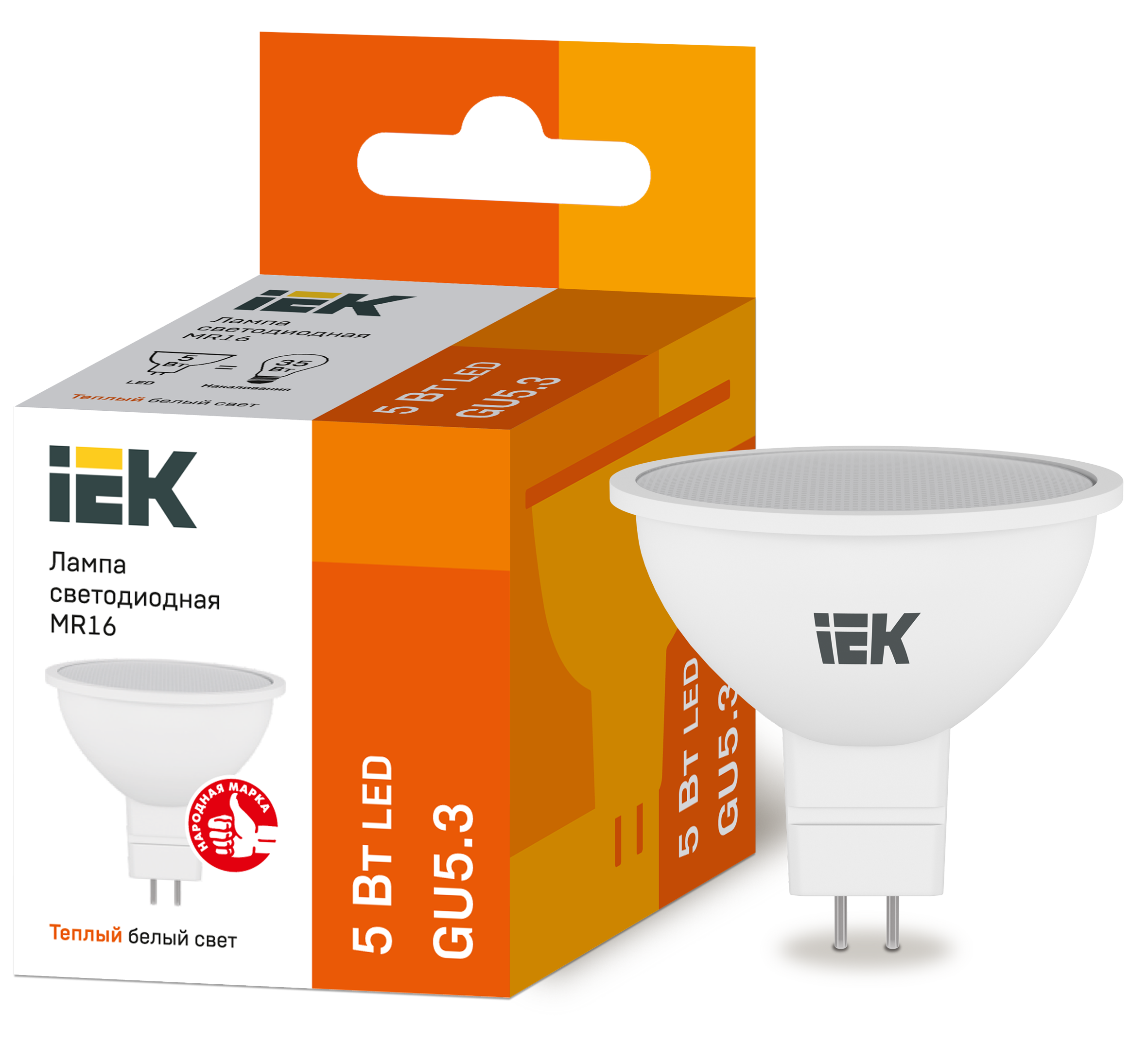 Наименование: Лампа светодиодная MR16 софит 5Вт 230В 3000К GU5.3 IEK