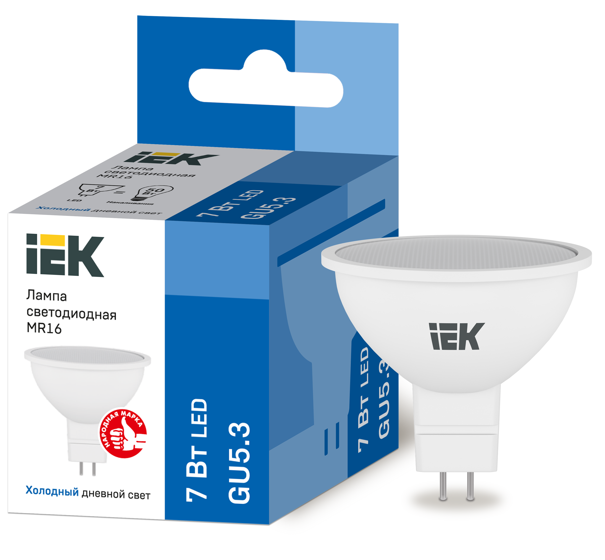 Наименование: Лампа светодиодная MR16 софит 7Вт 230В 6500К GU5.3 IEK