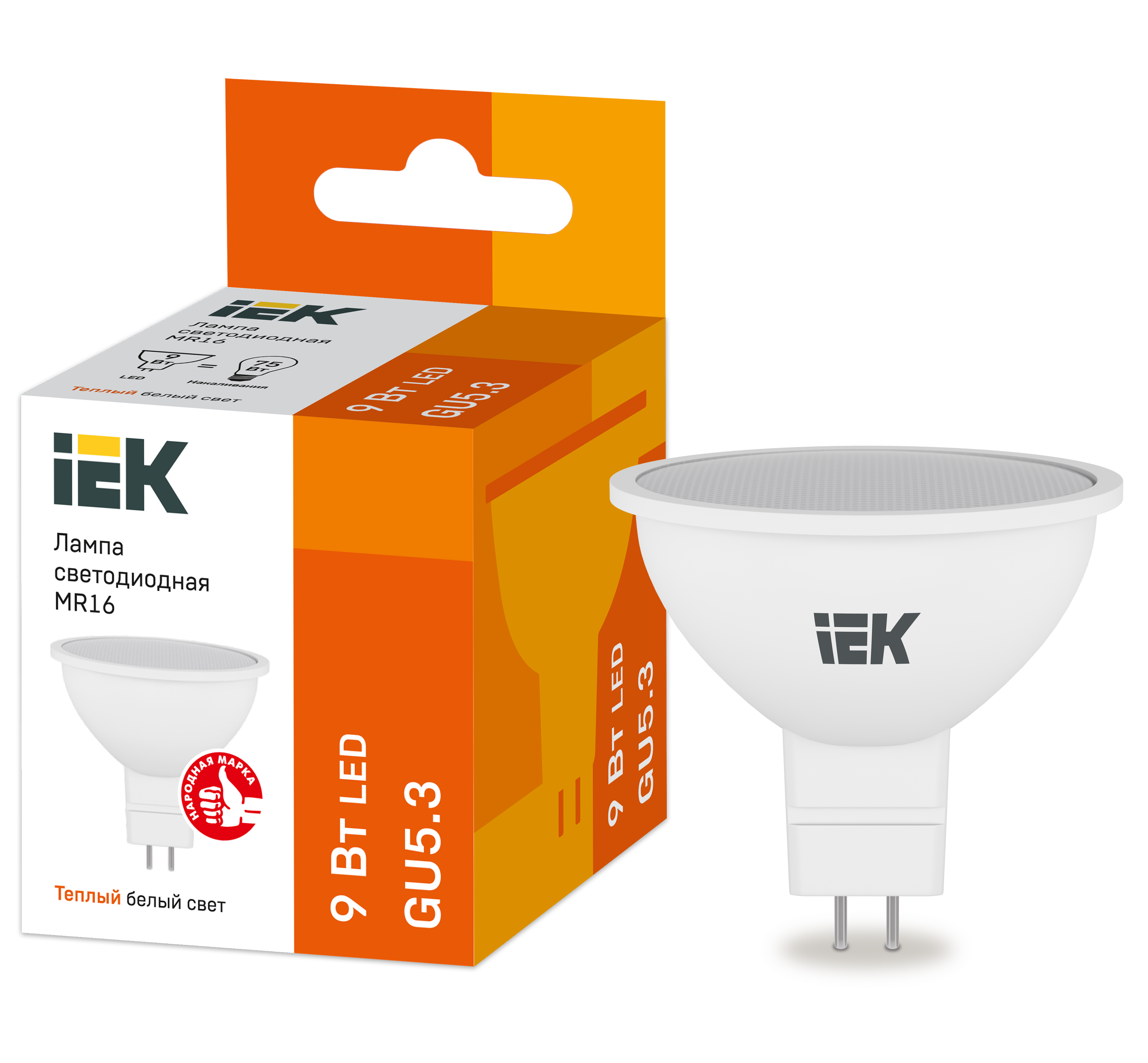 Наименование: Лампа светодиодная MR16 софит 9Вт 230В 3000К GU5.3 IEK