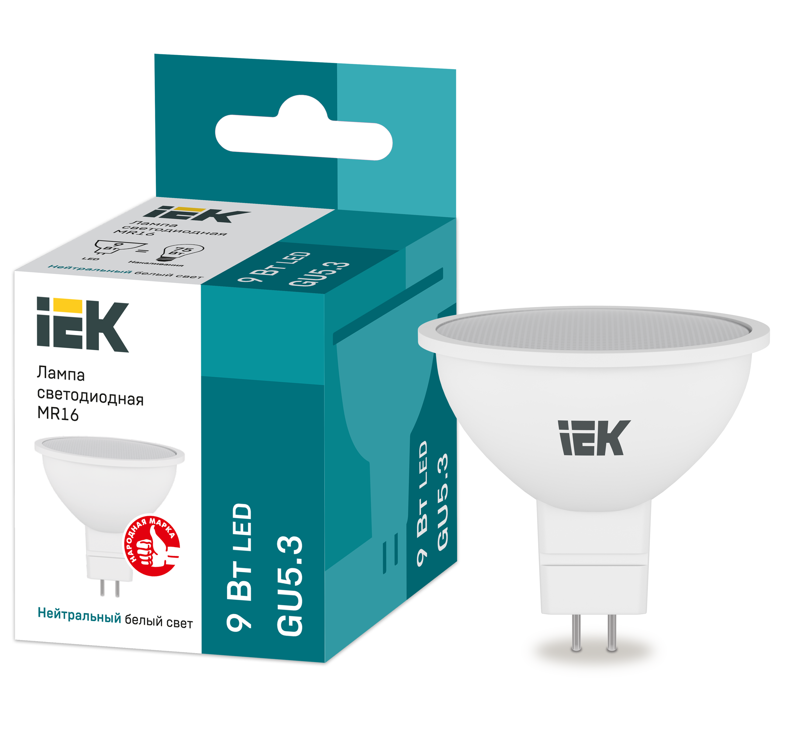 Наименование: Лампа светодиодная MR16 софит 9Вт 230В 4000К GU5.3 IEK