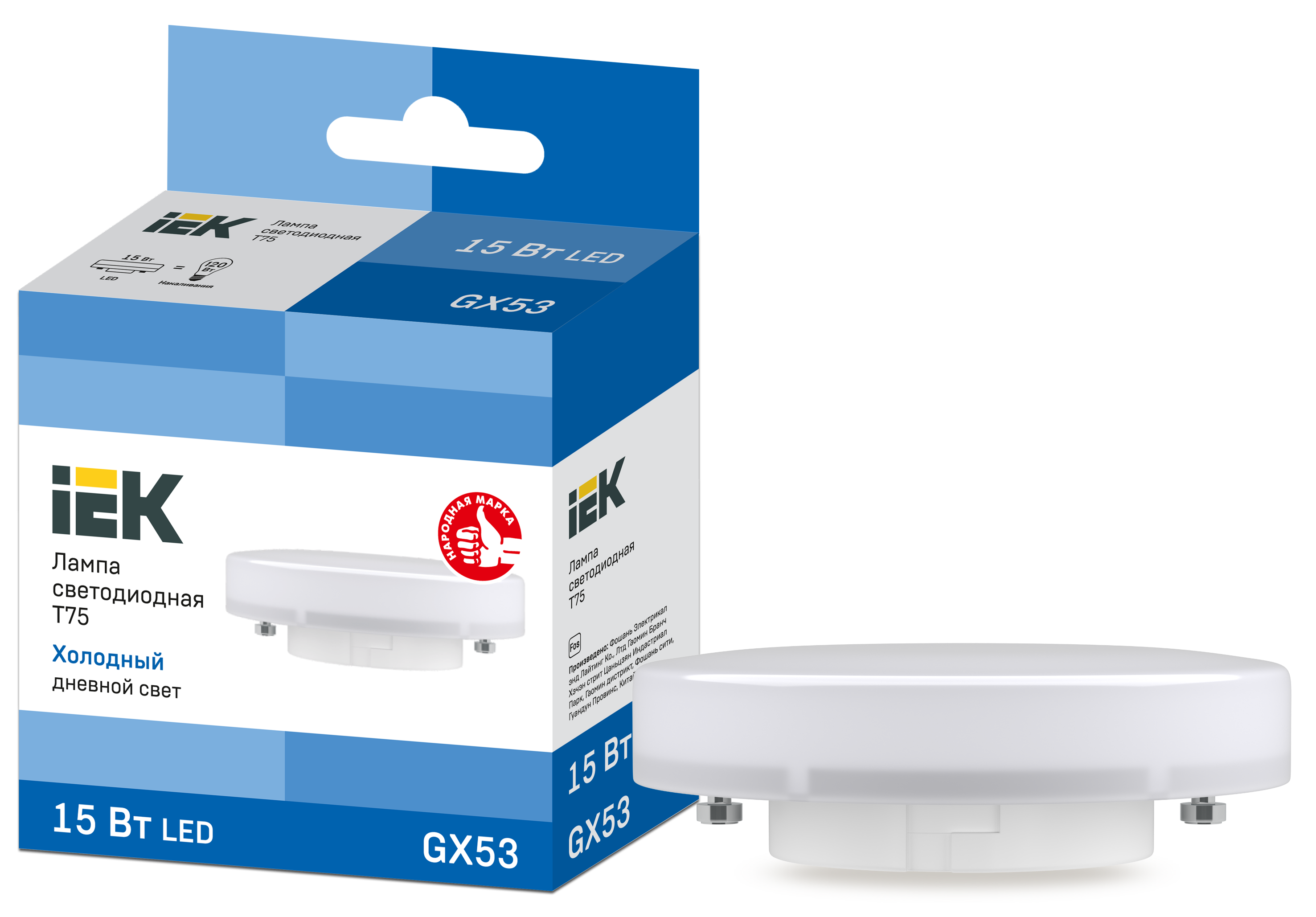 Наименование: Лампа светодиодная T75 таблетка 15Вт 230В 6500К GX53 IEK