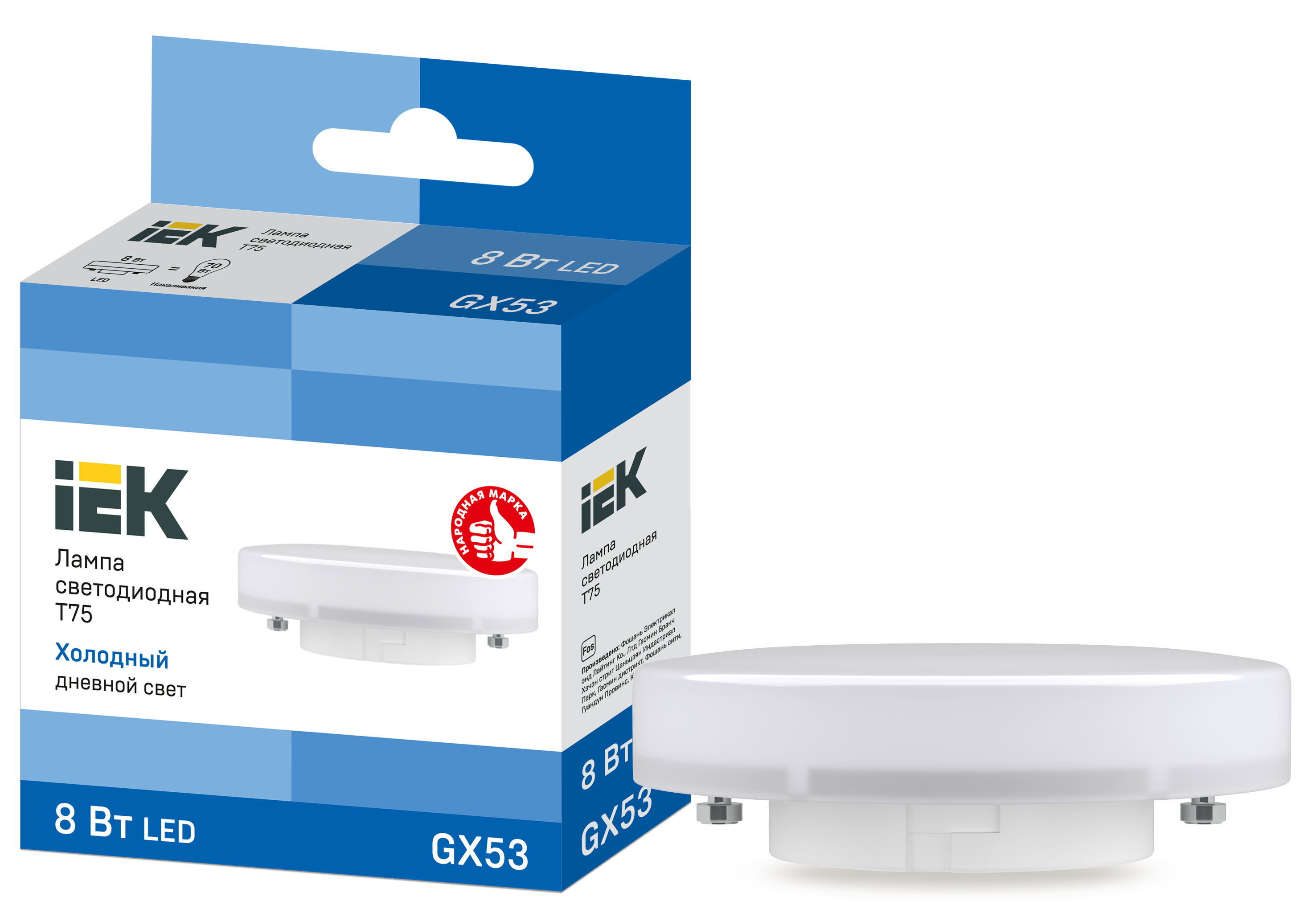 Наименование: Лампа светодиодная T75 таблетка 8Вт 230В 6500К GX53 IEK