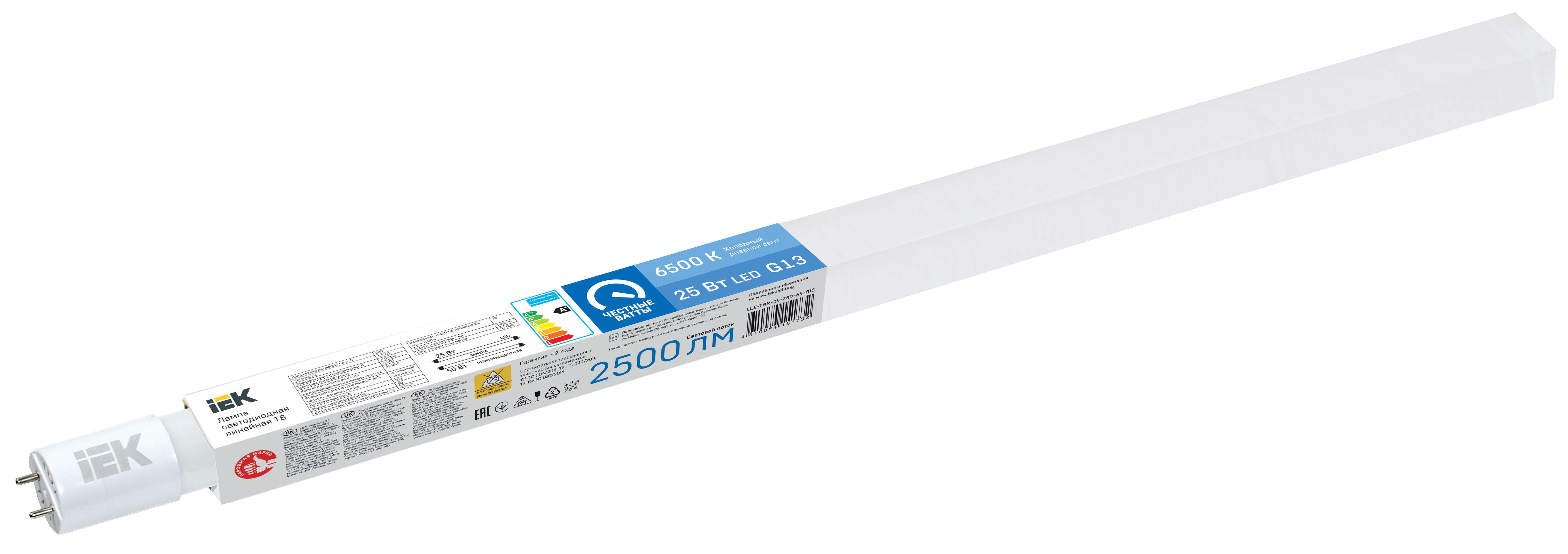 Наименование: Лампа светодиодная T8 линейная 13Вт 1300лм 230В 6500К 600мм G13 IEK